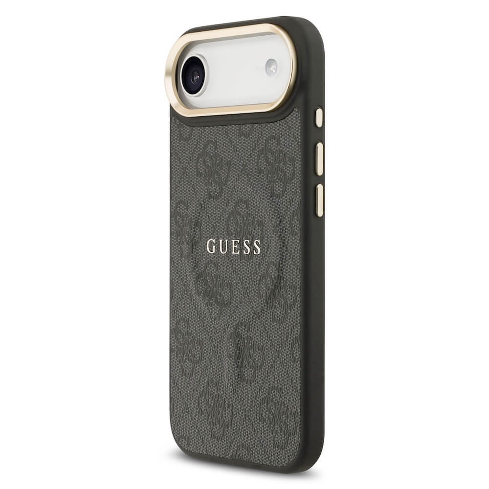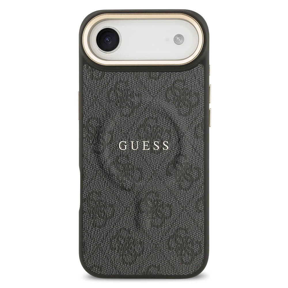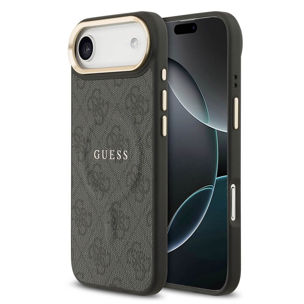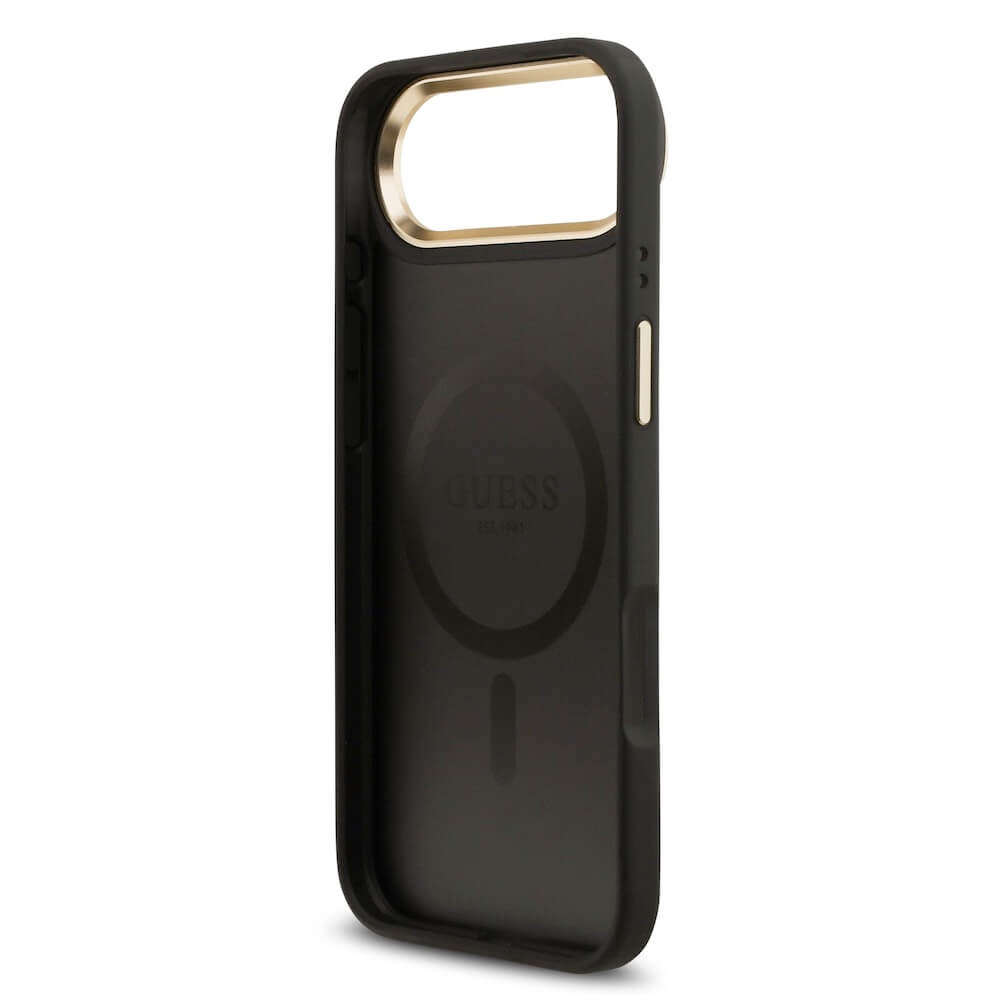 Дизайнерски кожен кейс с MagSafe за iPhone 17 Air - Guess PU 4G Gold Frame MagSafe Leather Hard Case (черен)