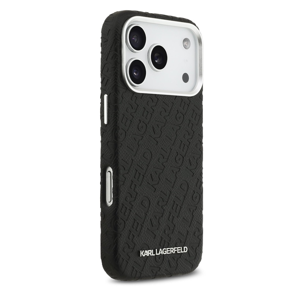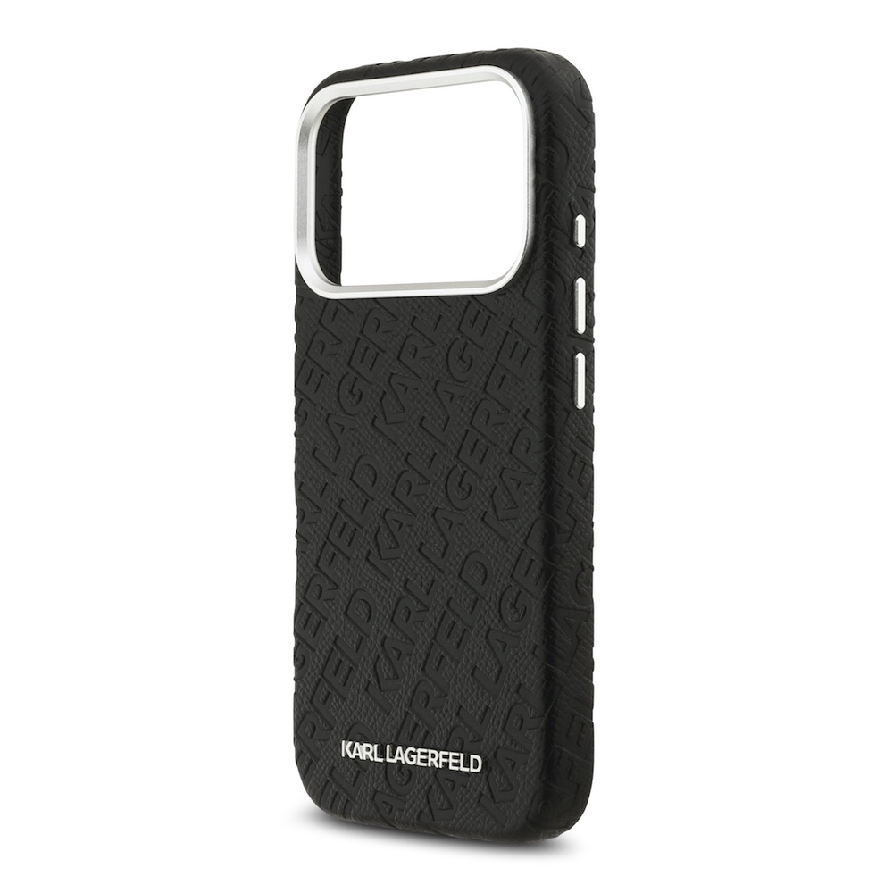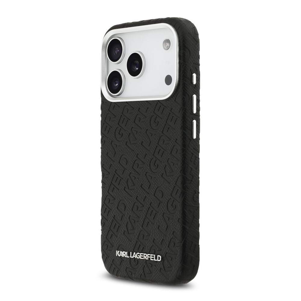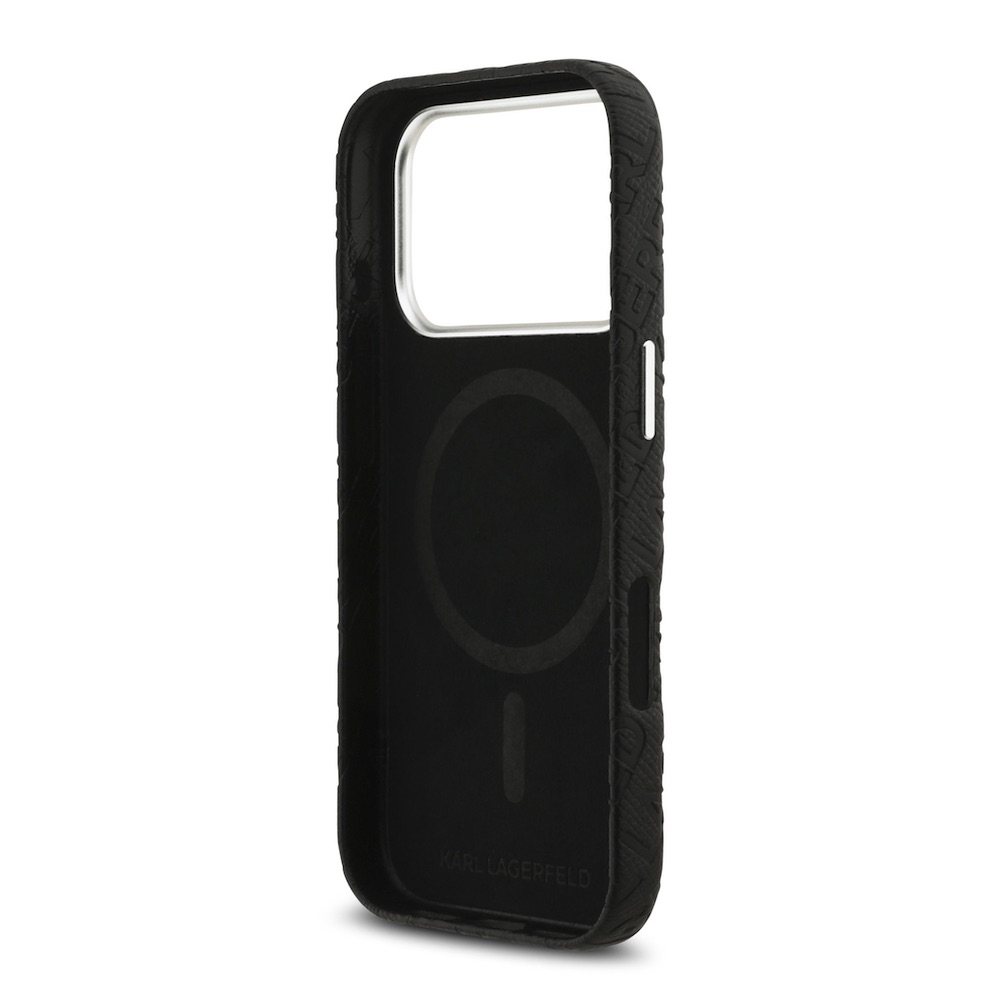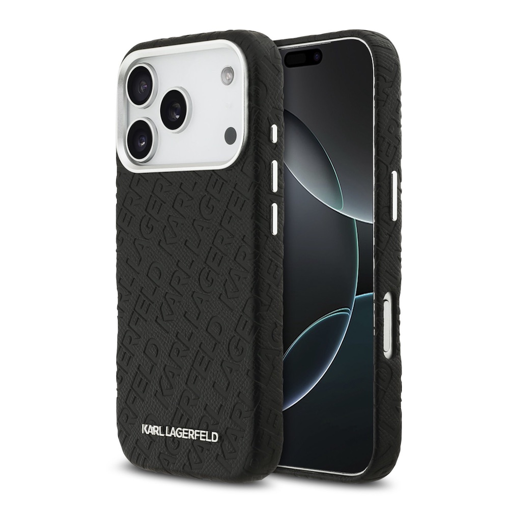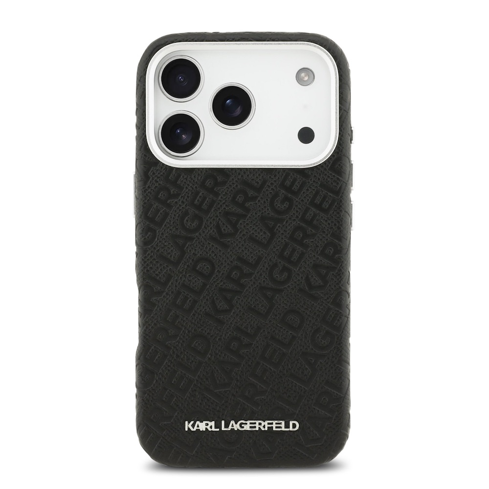 Дизайнерски кожен кейс с MagSafe за iPhone 17 Pro - Karl Lagerfeld PU Grained Repeated Logo MagSafe Leather Hard Case (черен)