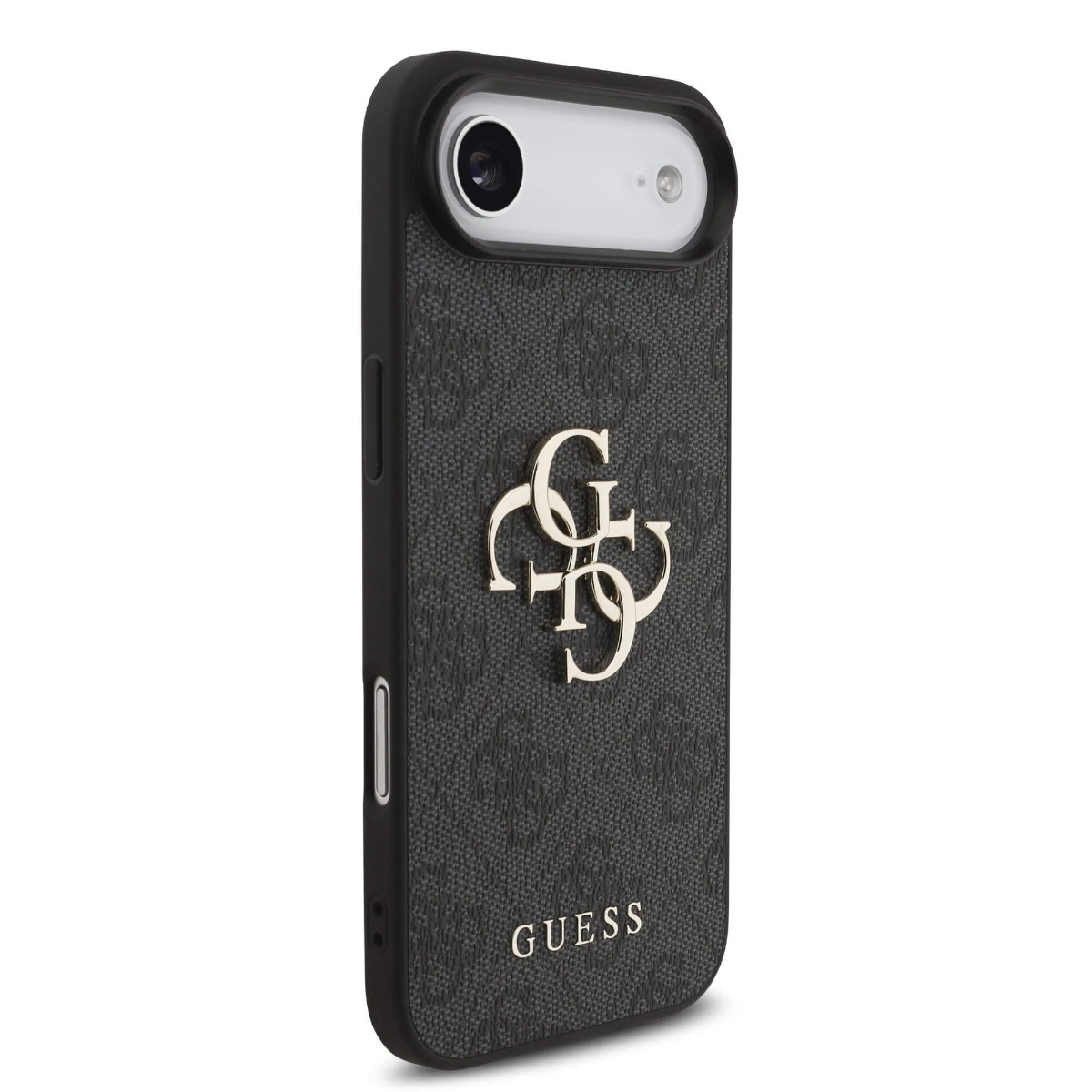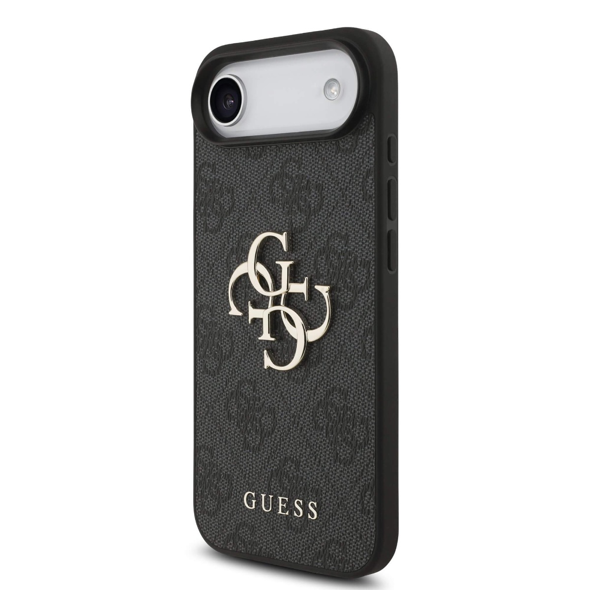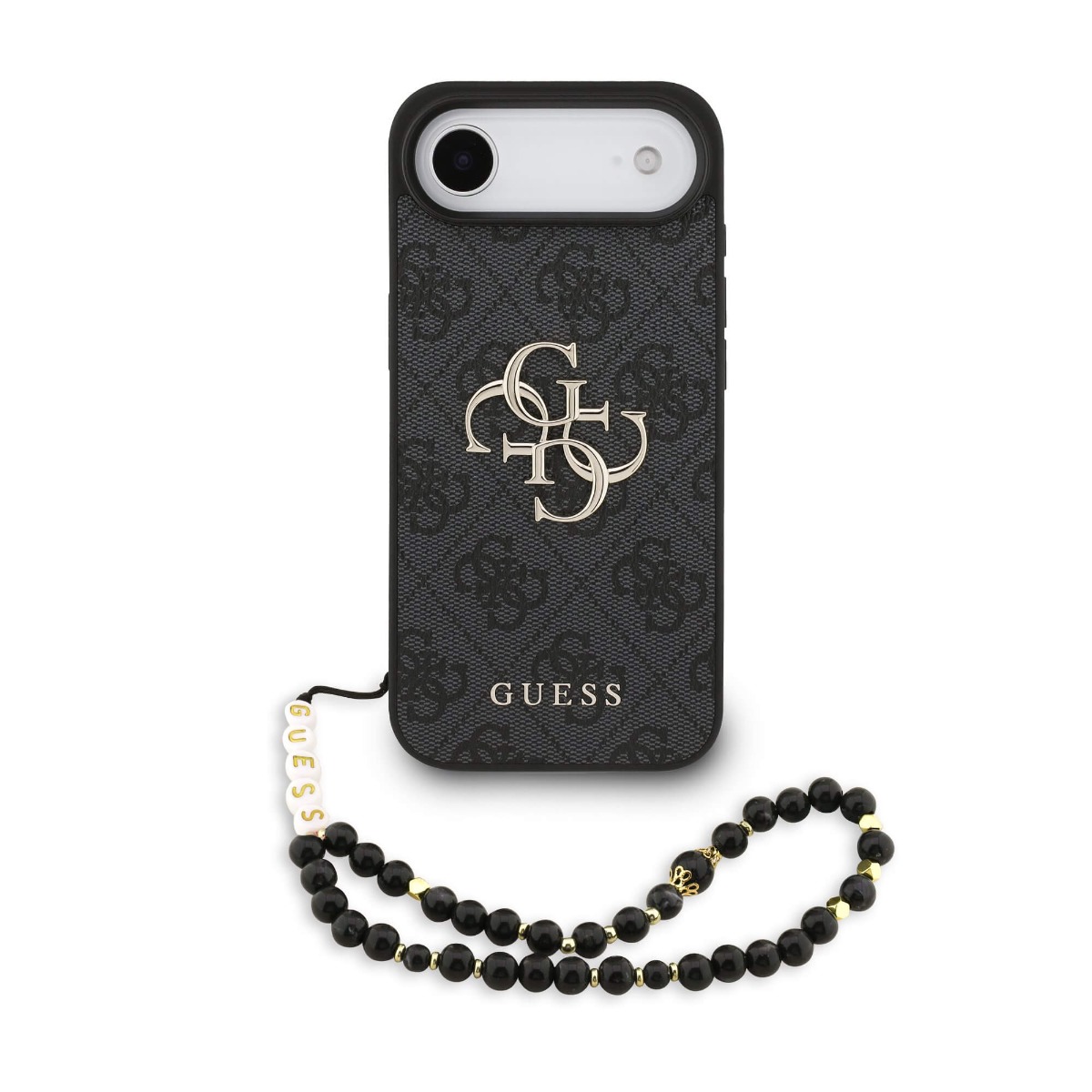 Дизайнерски кожен кейс с връзка за китката за iPhone 17 Air - Guess PU 4G Metal Logo Strap Case (черен)