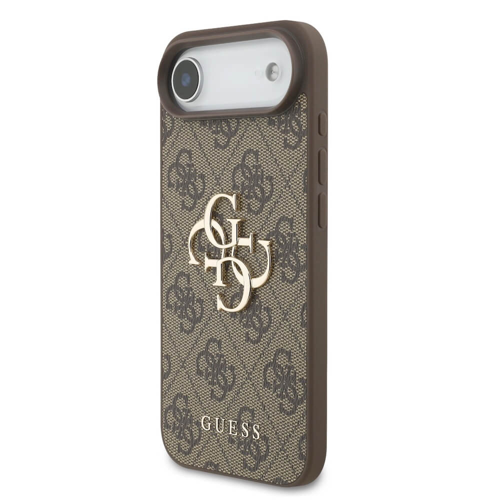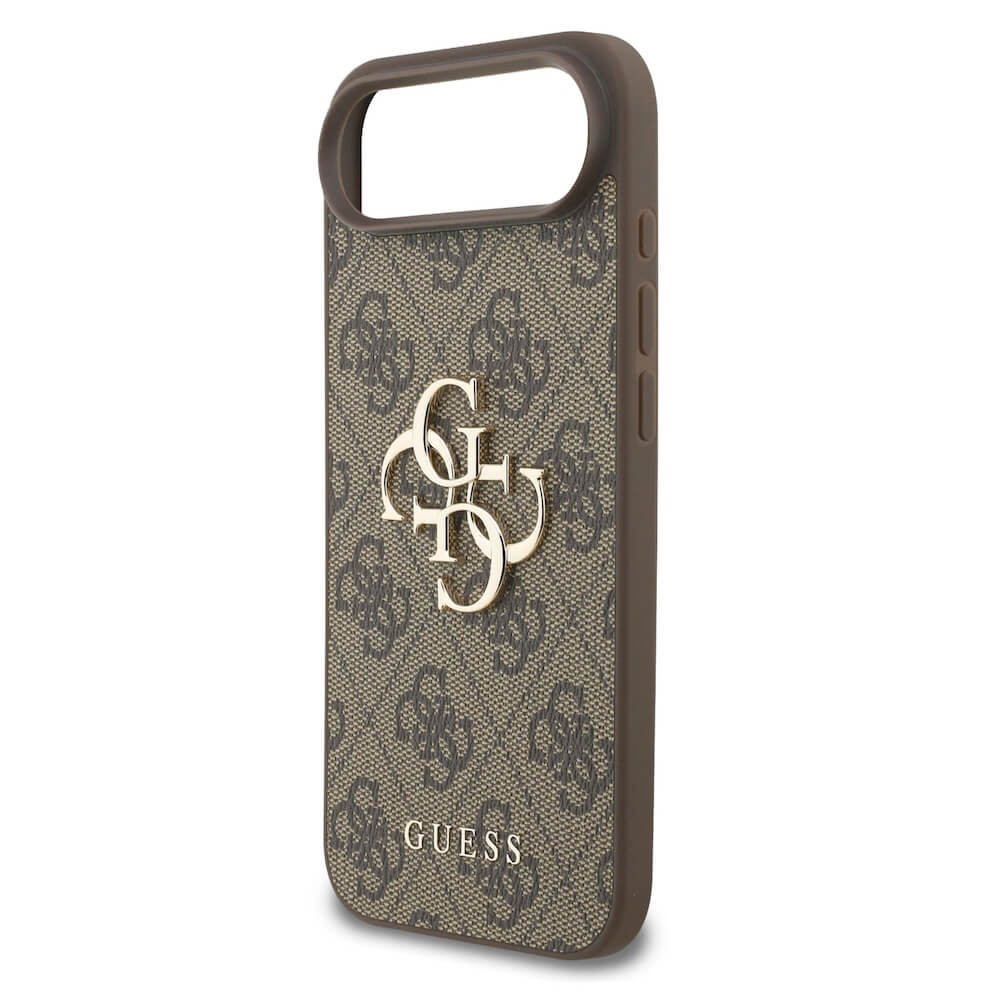 Дизайнерски кожен кейс с връзка за ръка за iPhone 17 Air - Guess PU 4G Metal Logo Strap Case (кафяв)