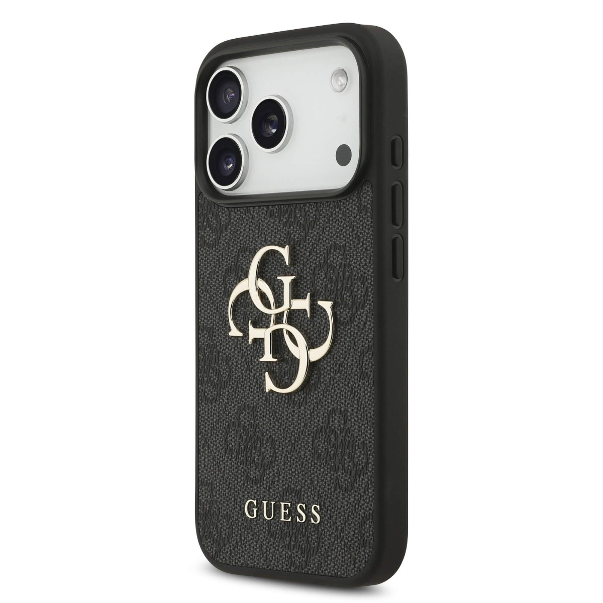 Дизайнерски кожен кейс с връзка за ръка за iPhone 17 Pro Max - Guess PU 4G Metal Logo Strap Case (черен)