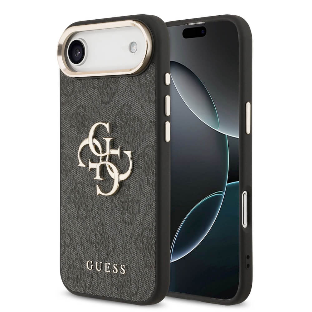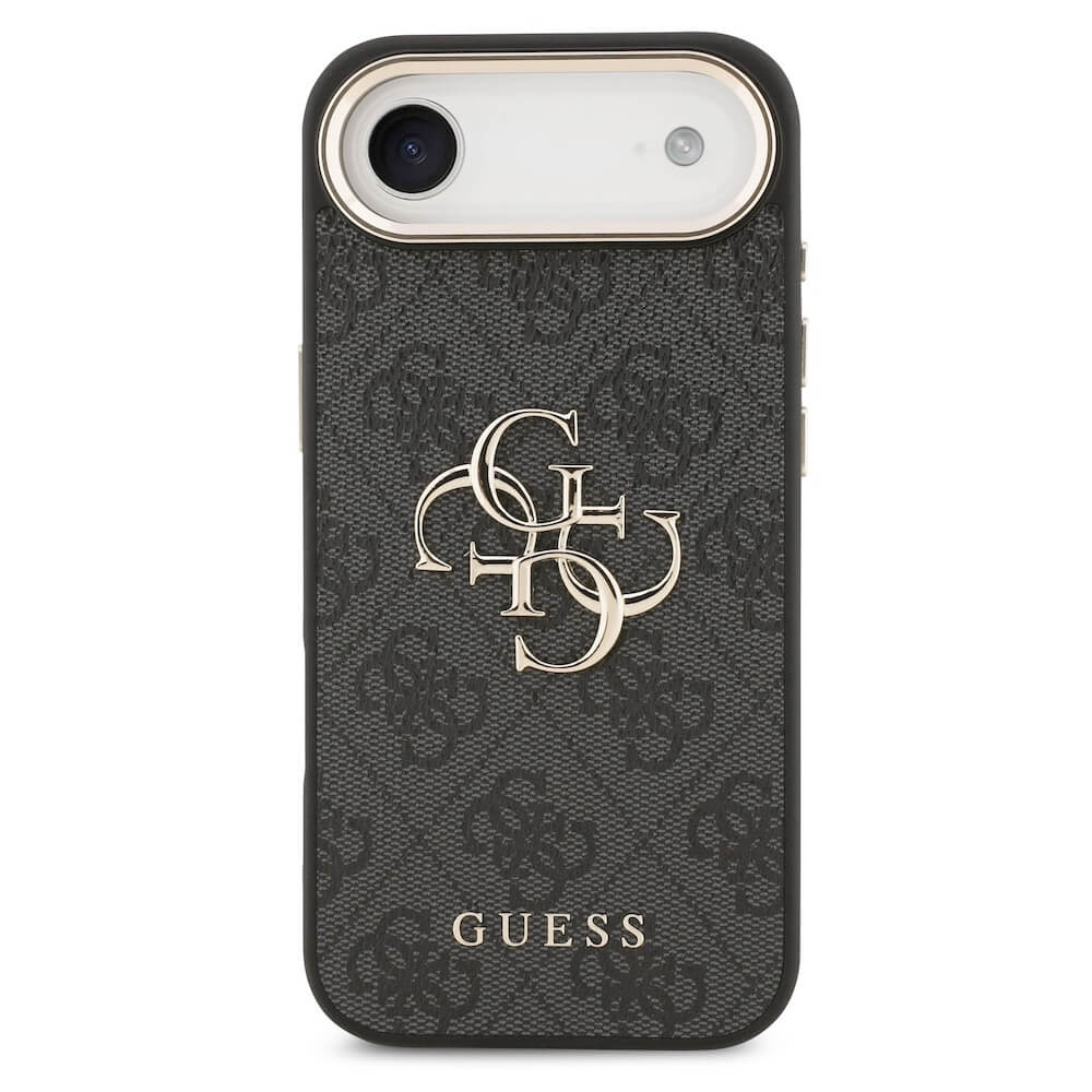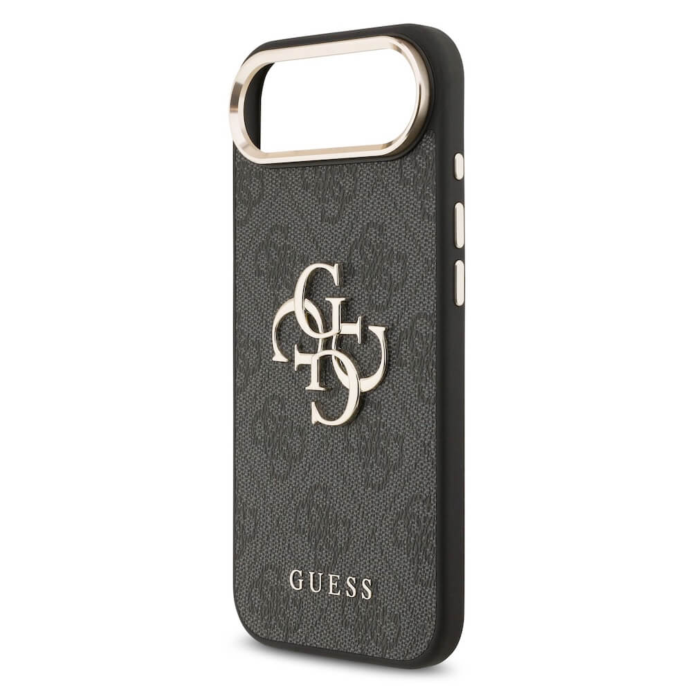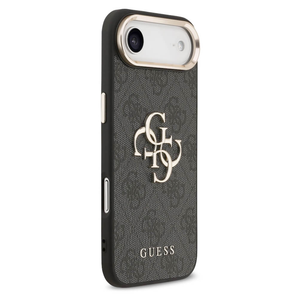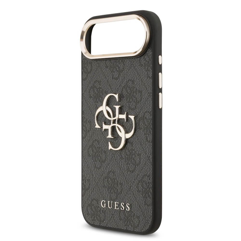 Дизайнерски кожен кейс за iPhone 17 Air - Guess PU Leather 4G Metal Logo Gold Frame Case (черен)