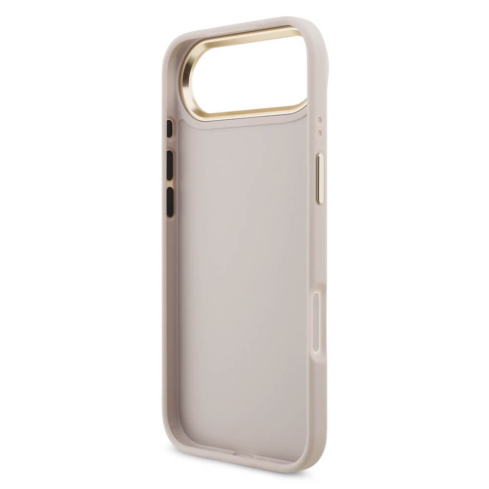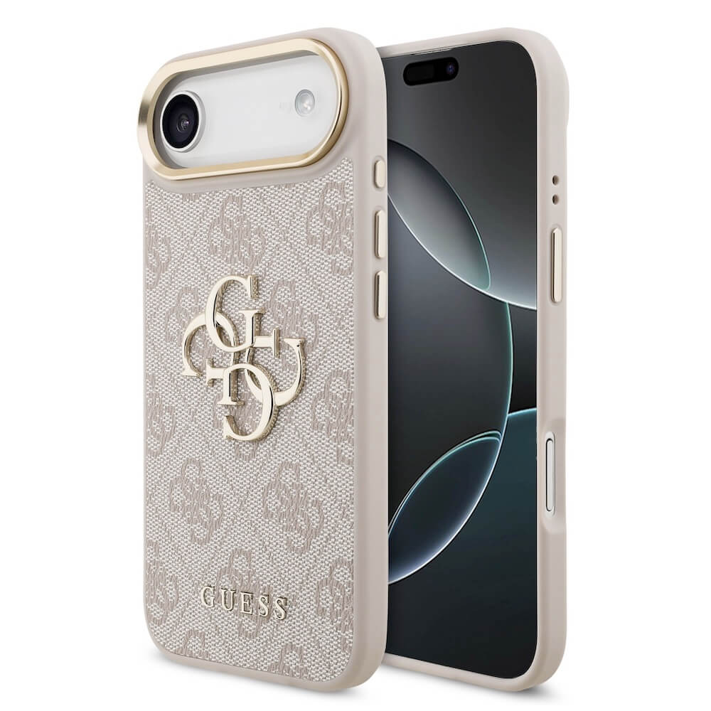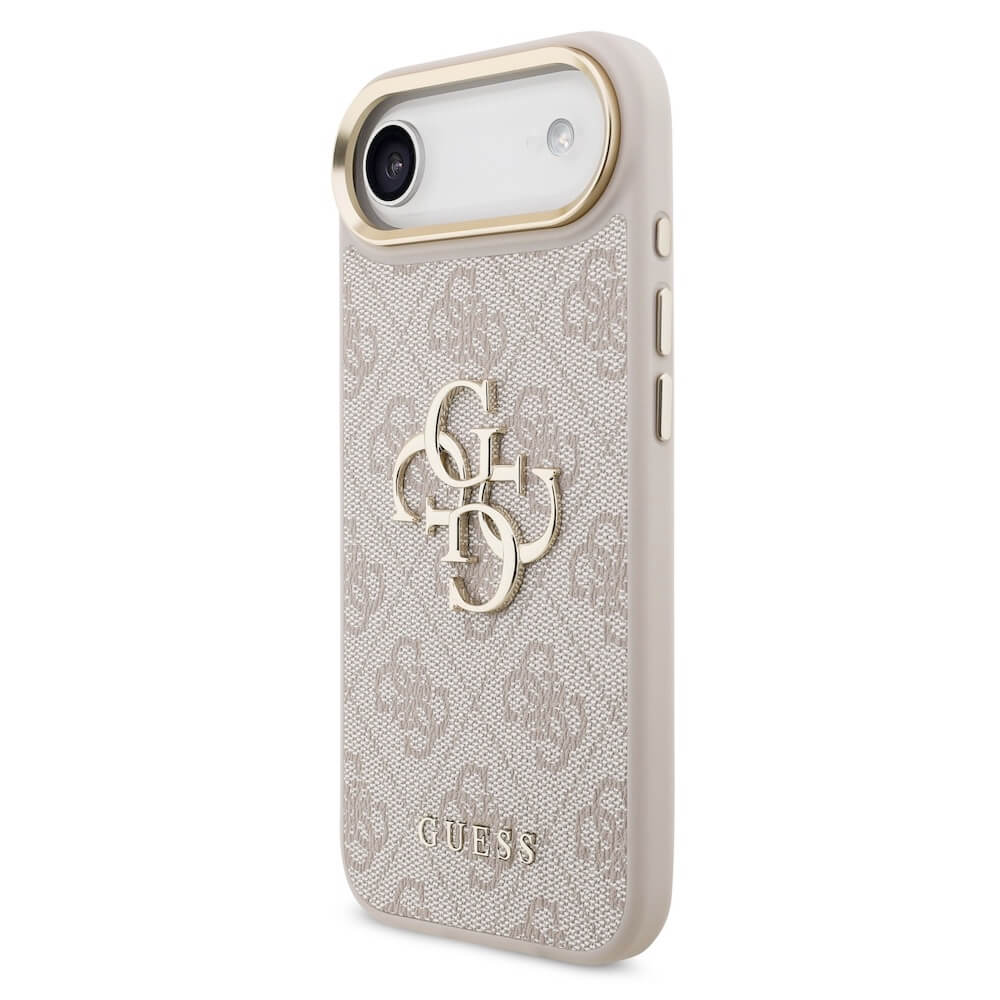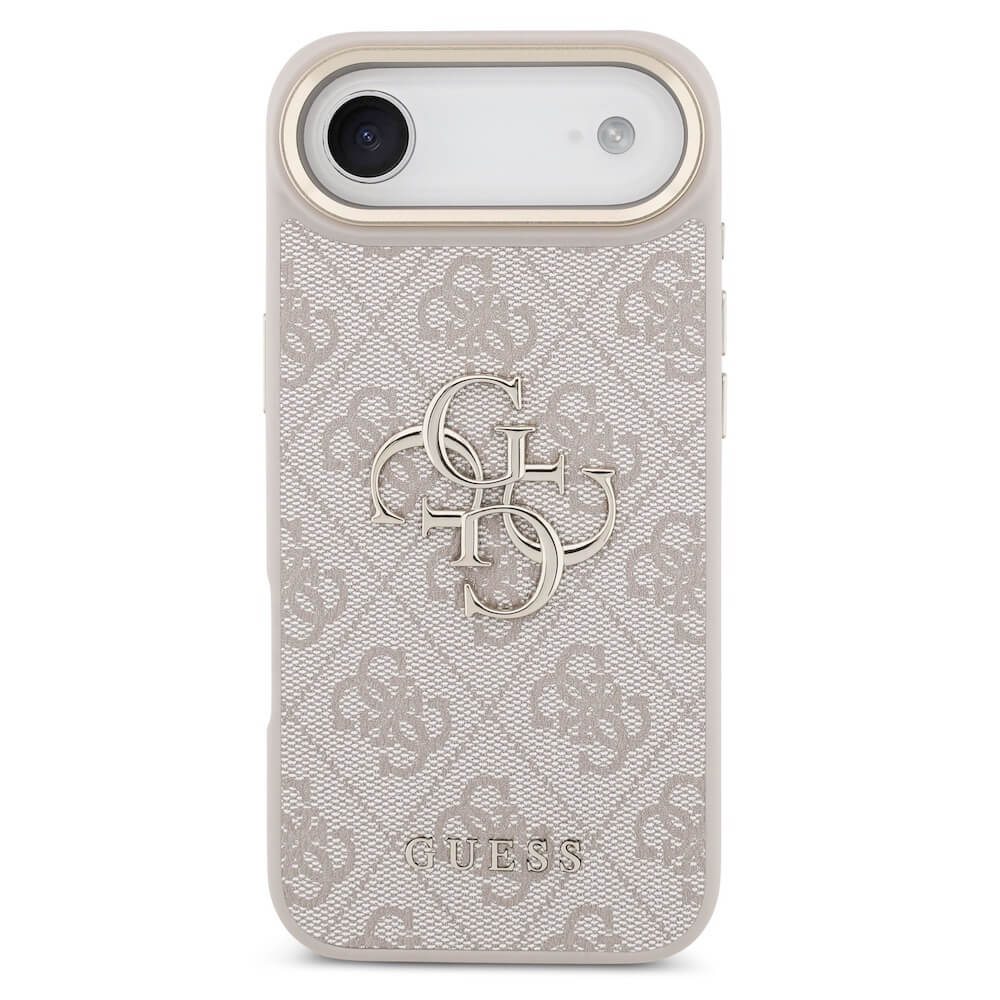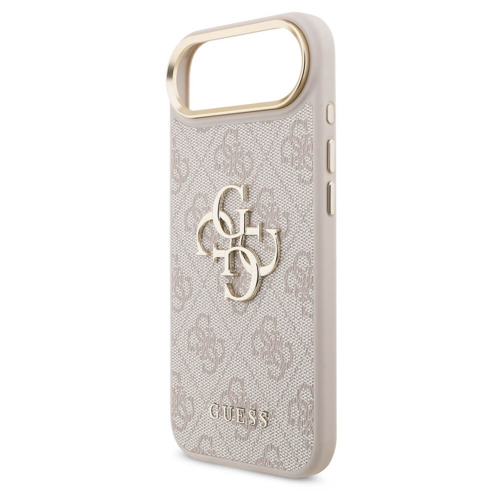 Дизайнерски кожен кейс за iPhone 17 Air - Guess PU Leather 4G Metal Logo Gold Frame Case (розов)