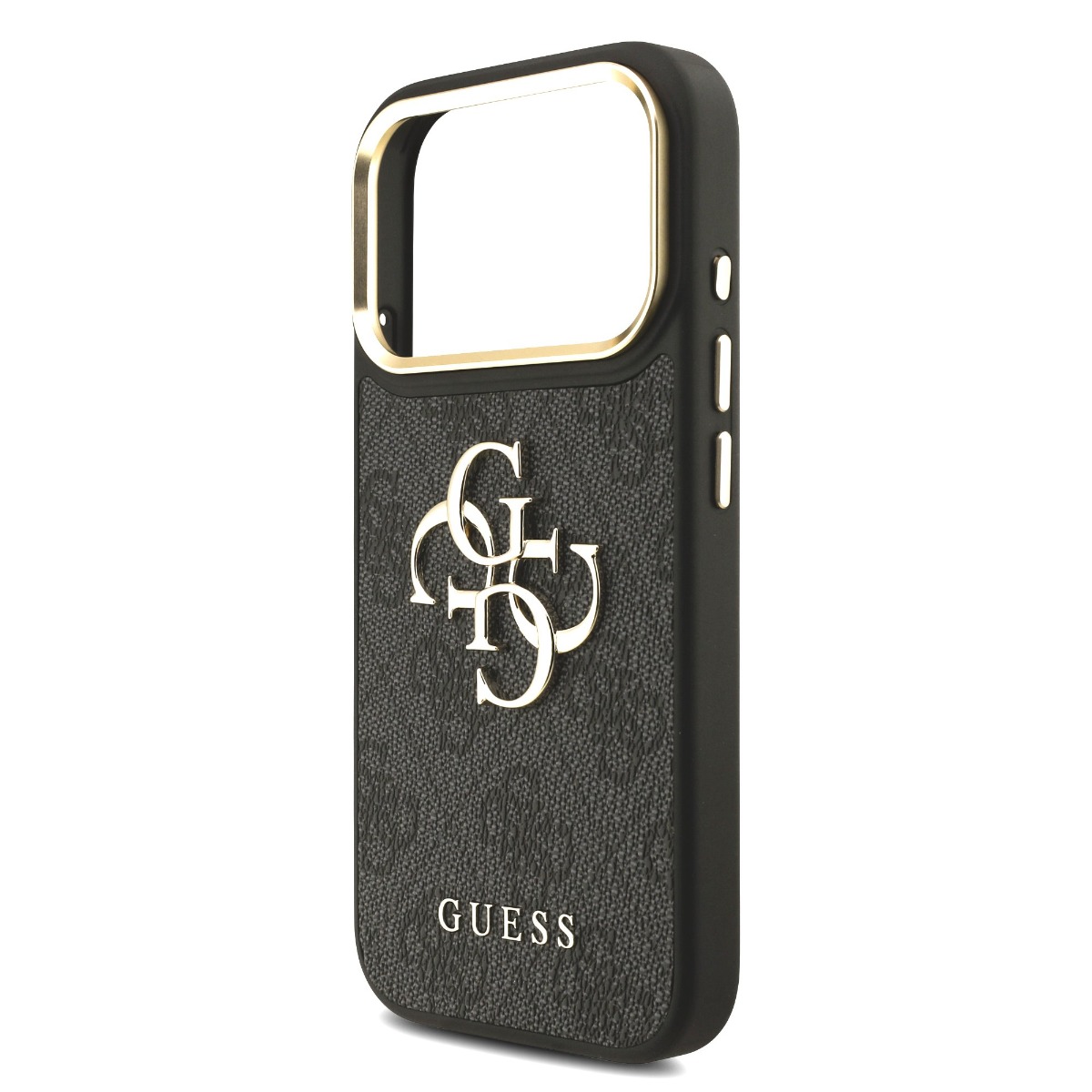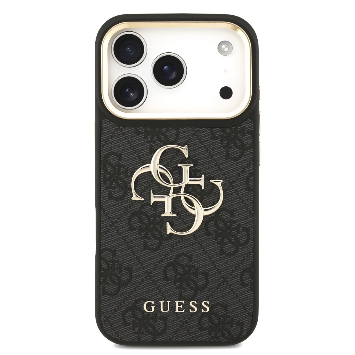 Дизайнерски кожен кейс за iPhone 17 Pro - Guess PU Leather 4G Metal Logo Gold Frame Case (черен)