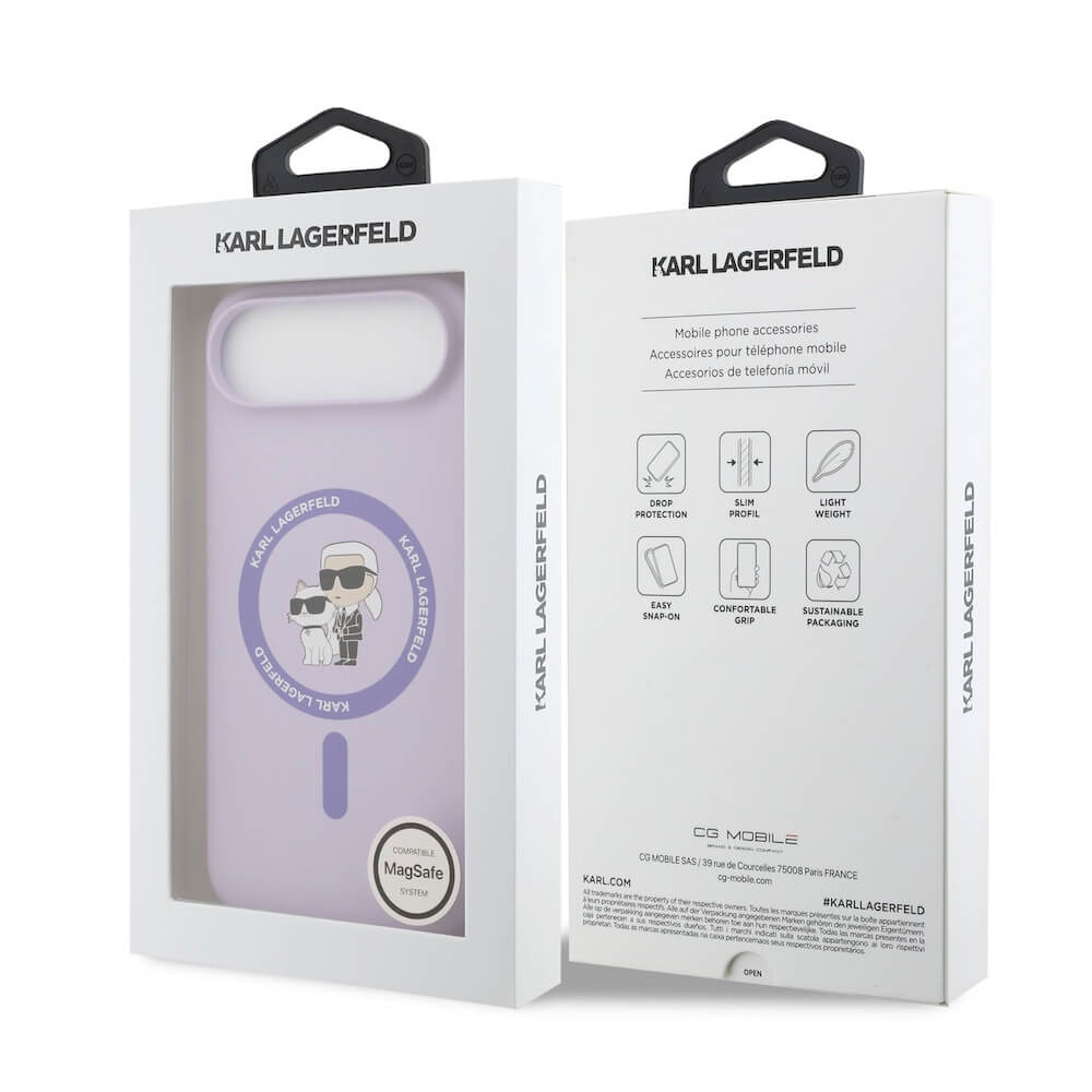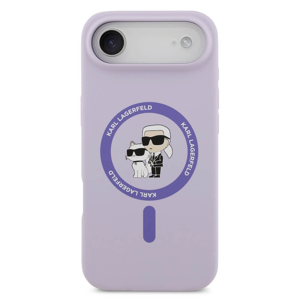Дизайнерски силиконов кейс с MagSafe за iPhone 17 Air - Karl Lagerfeld Liquid Silicone Karl and Choupette Heads MagSafe Case (лилав)
