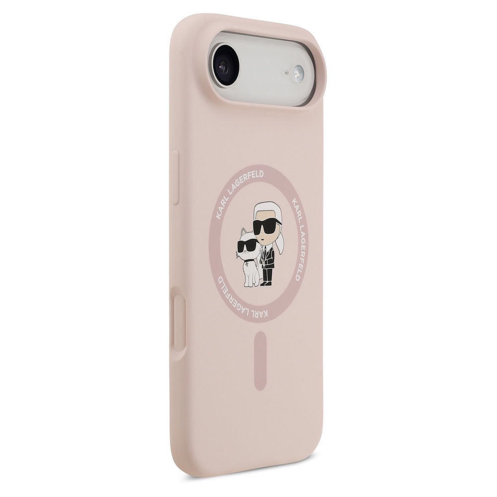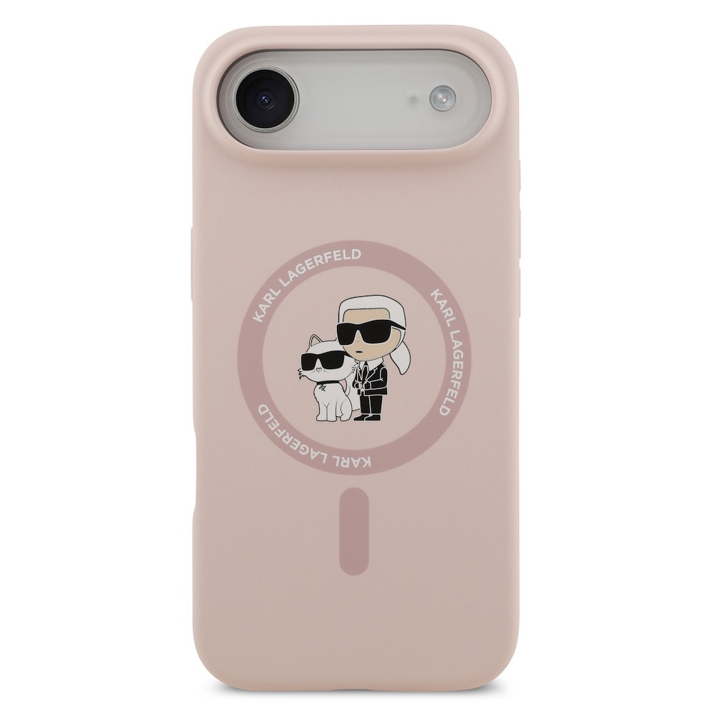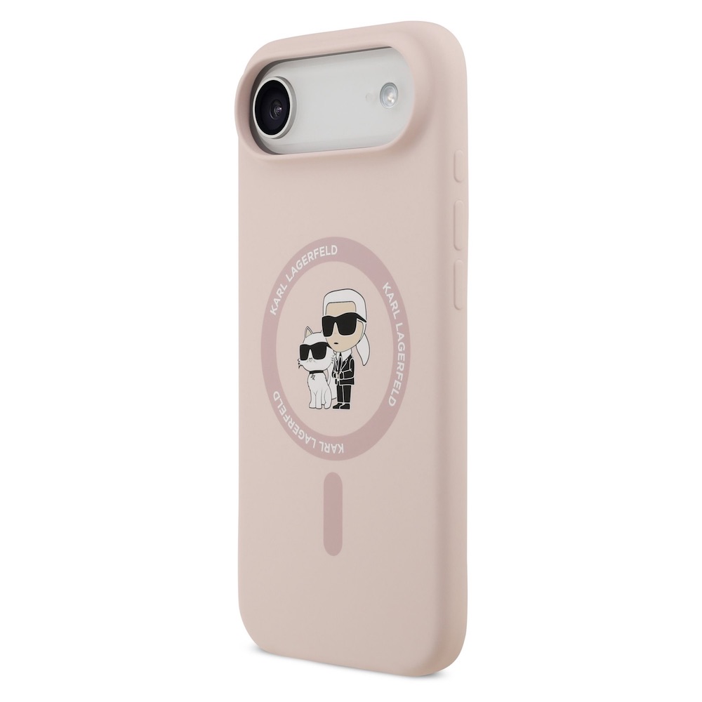 Дизайнерски силиконов кейс с MagSafe за iPhone 17 Air - Karl Lagerfeld Liquid Silicone Karl and Choupette Heads MagSafe Case (розов)