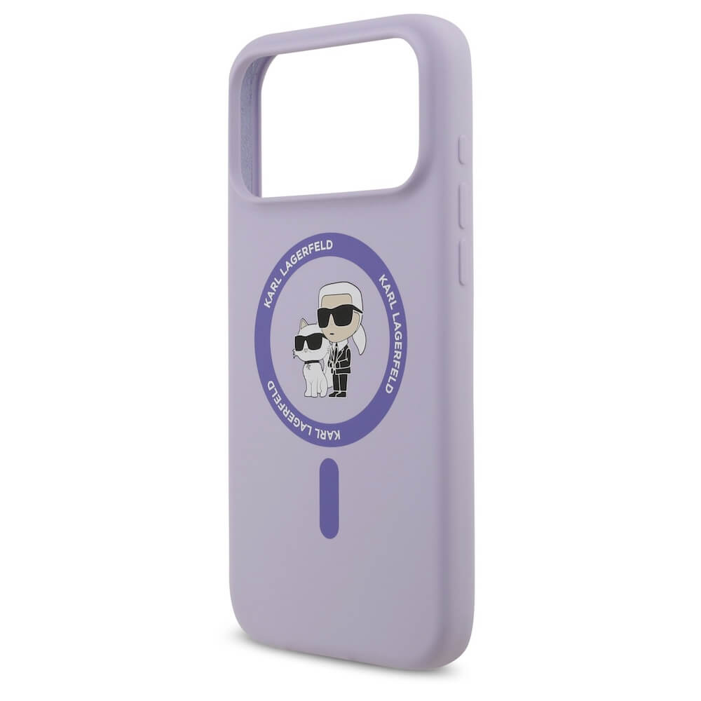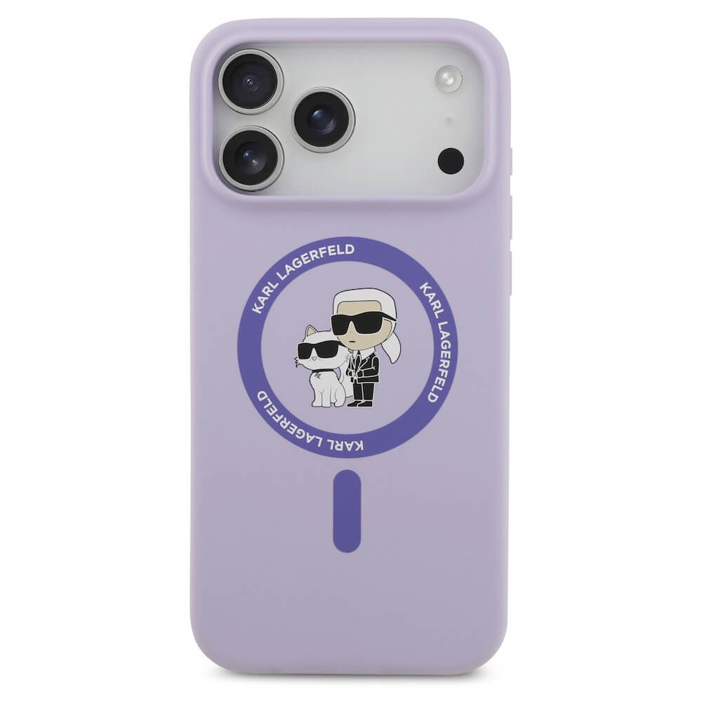 Дизайнерски силиконов кейс с MagSafe за iPhone 17 Pro Max - Karl Lagerfeld Liquid Silicone Karl and Choupette Heads MagSafe Case (лилав)