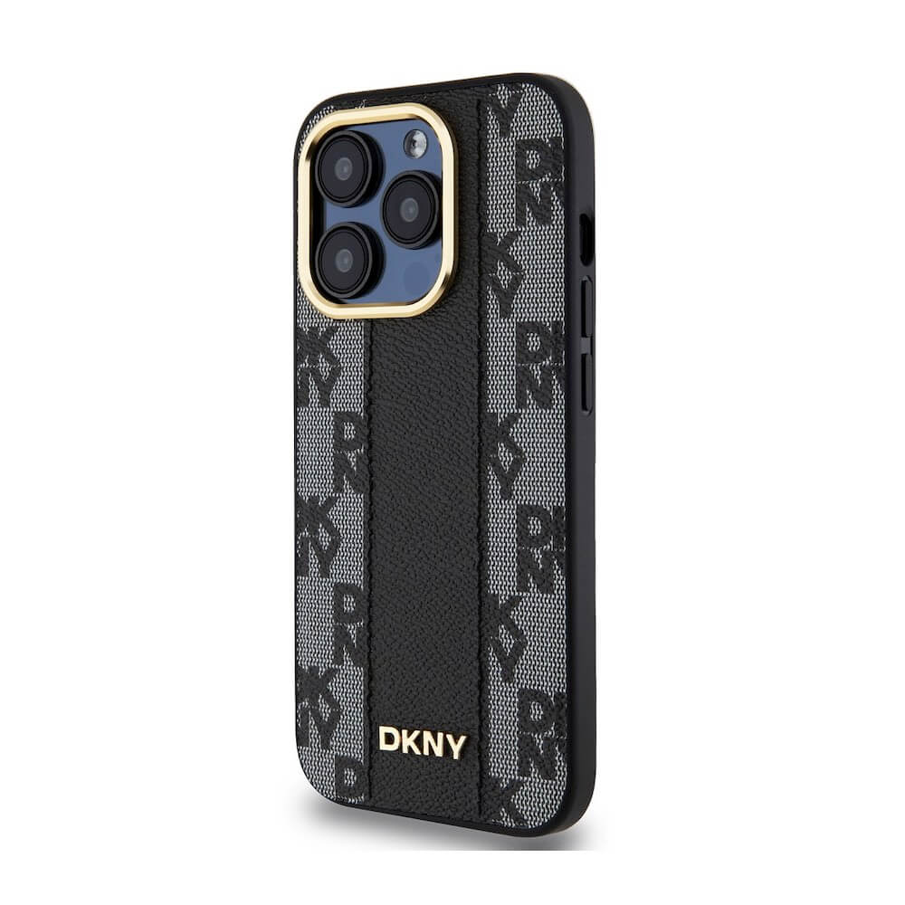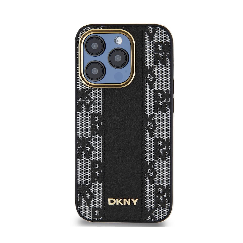 DKNY Checkered Pattern Leather Hard Case - дизайнерски кожен кейс за iPhone 15 Pro (черен)