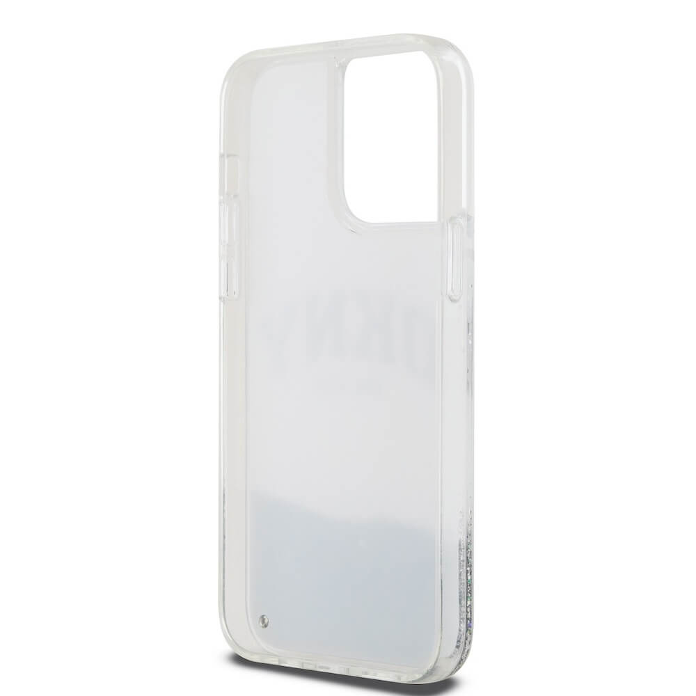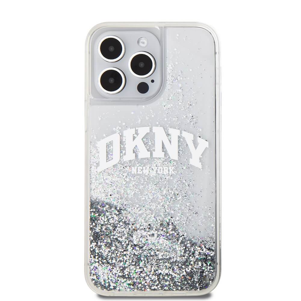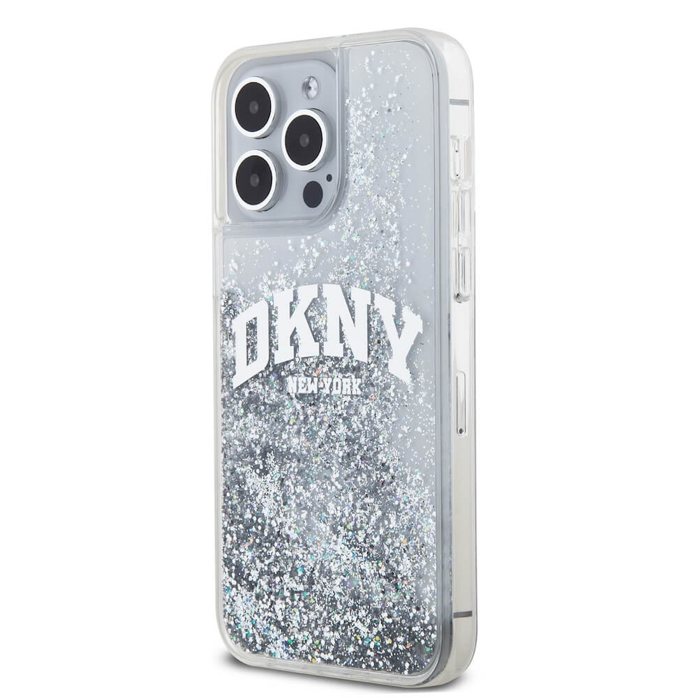 DKNY Liquid Glitter Arch Logo Case - дизайнерски кейс с висока защита за iPhone 15 Pro Max (прозрачен)