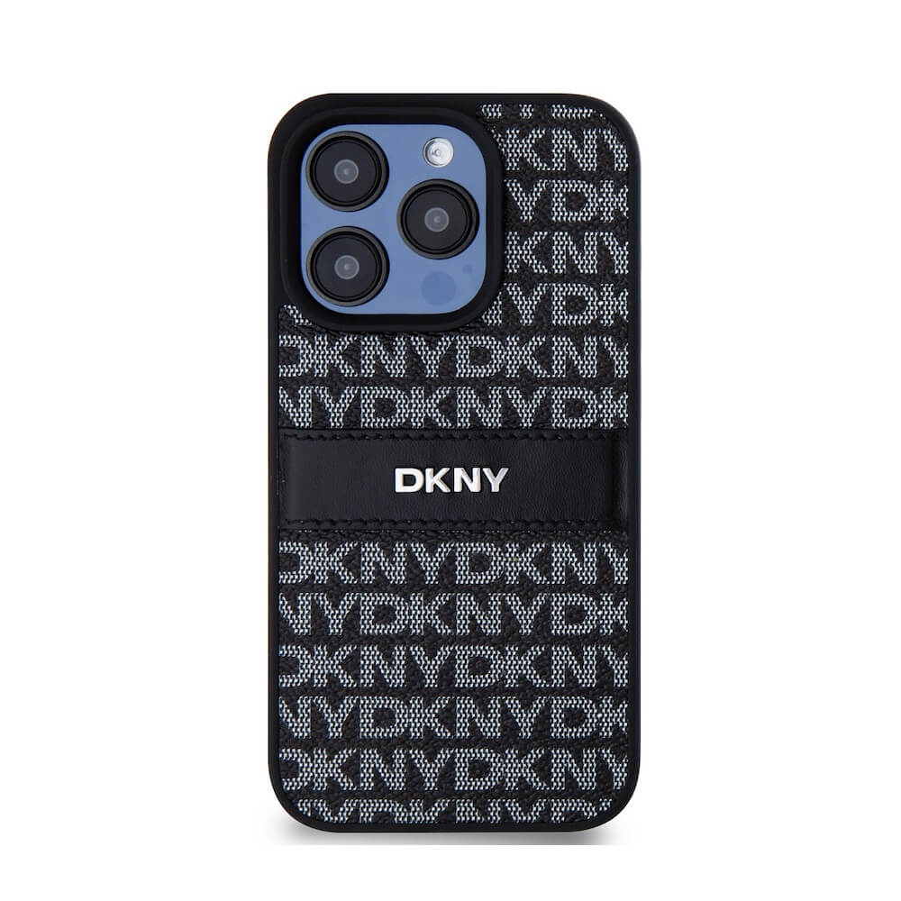 DKNY Repeat Pattern Tonal Stripe Leather Hard Case - дизайнерски кожен кейс за iPhone 15 Pro (черен)