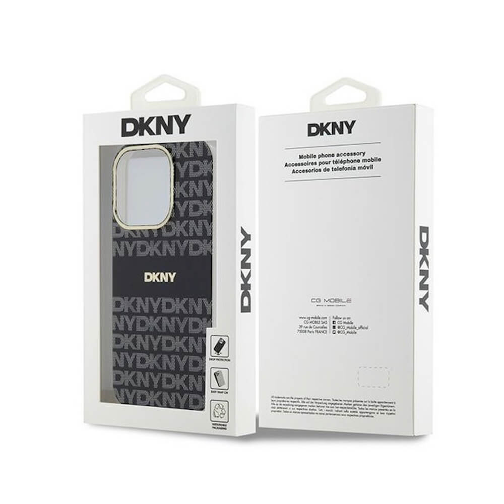 DKNY Repeat Pattern Tonal Stripe MagSafe Case - хибриден удароустойчив кейс с MagSafe за iPhone 15 Pro Max (черен)