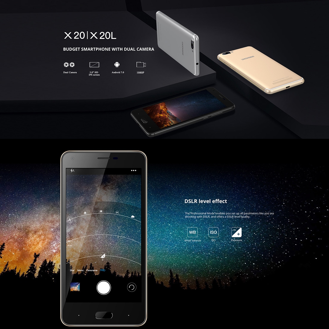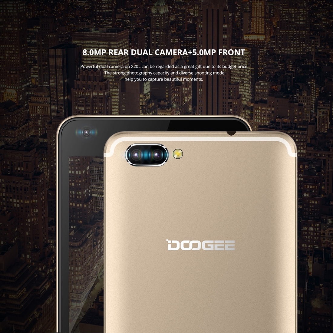 Продукта DooGee X20, 5 инча, 4-ядрен смартфон с 2 сим карти, Android 7 е добавен в сайта на 27 Юни 2015