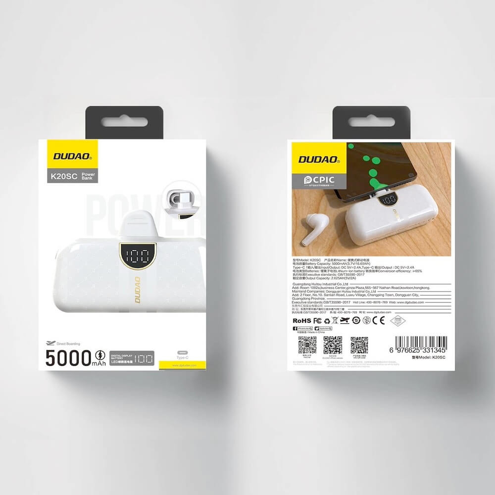 Dudao K20SC Mini Power Bank 5000 mAh USB-C - външна батерия с USB-C конектор (бял)