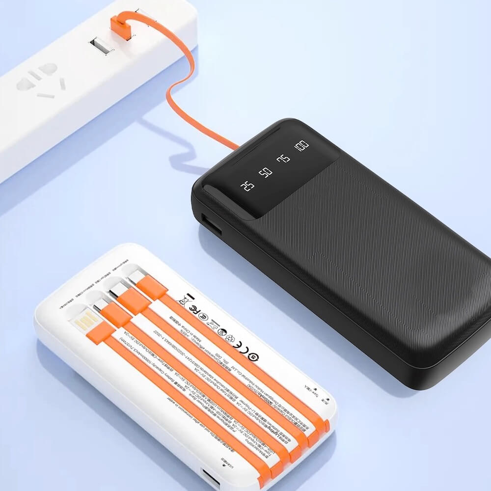С Dudao K6Pro вие получавате не само мощност, но и иновации. Вградените кабели (USB-A, USB-C, Lightning, micro USB) премахват нуждата от допълнителни аксесоари, а цифровият LED дисплей ви позволява да следите точно нивото на зареждане. Не пропускайте тази страхотна оферта!