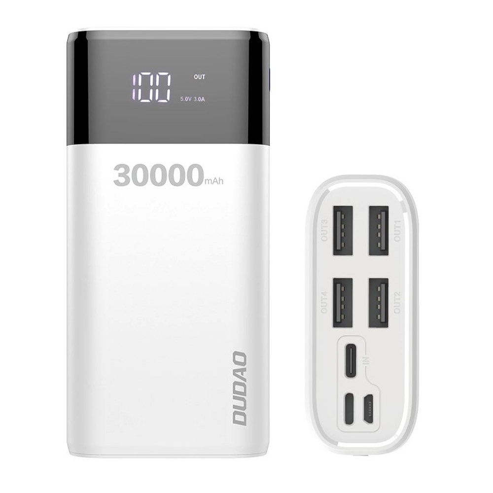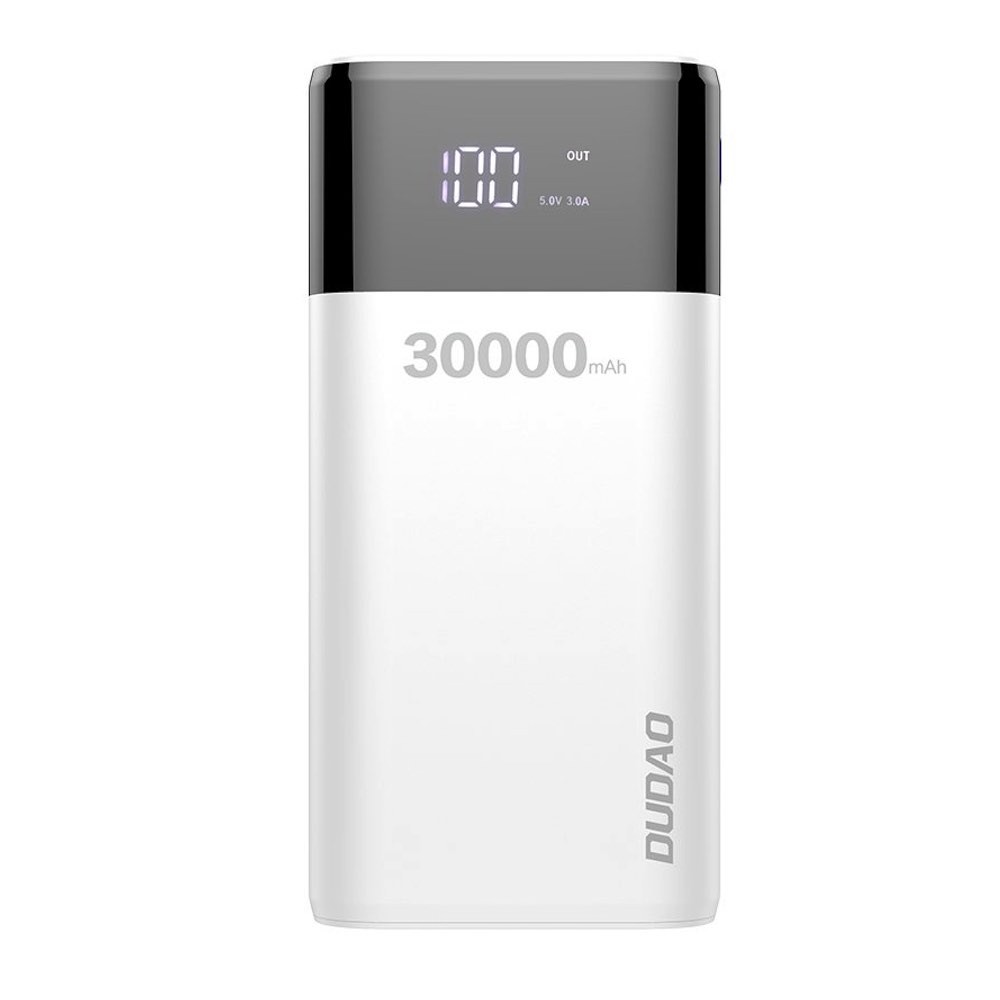 Dudao K8Max Power Bank With LCD 30000 mAh 4A - външна батерия с четери USB-A и технология за бързо зареждане (бял)
