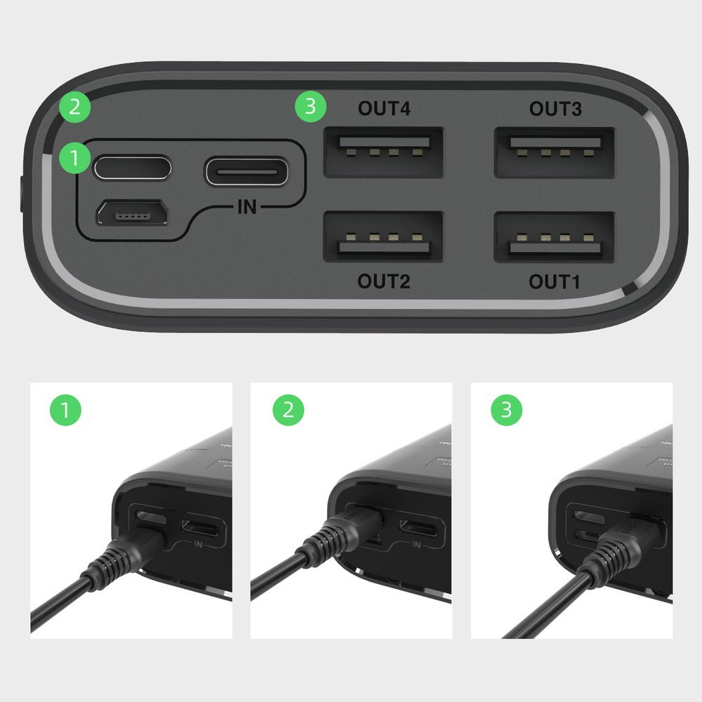 - Външна батерия с капацитет от 30000 mAh и четери USB-A портове за зареждане на вашите мобилни устройства
