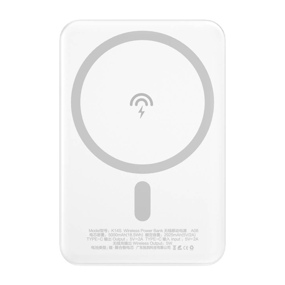 Dudao Magnetic Wireless Power Bank 5000 mAh 10W - безжична преносима външна батерия с USB-C вход за iPhone с Magsafe (бял)