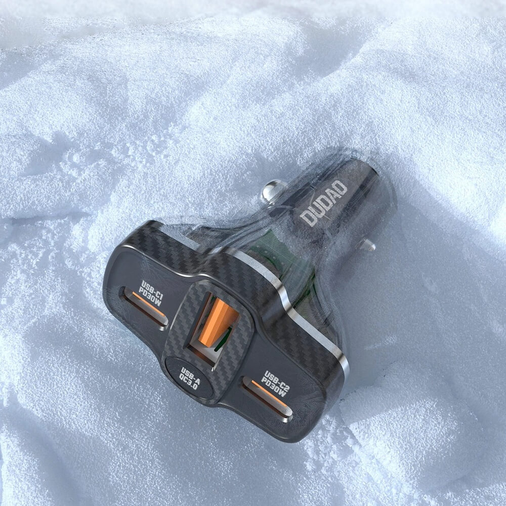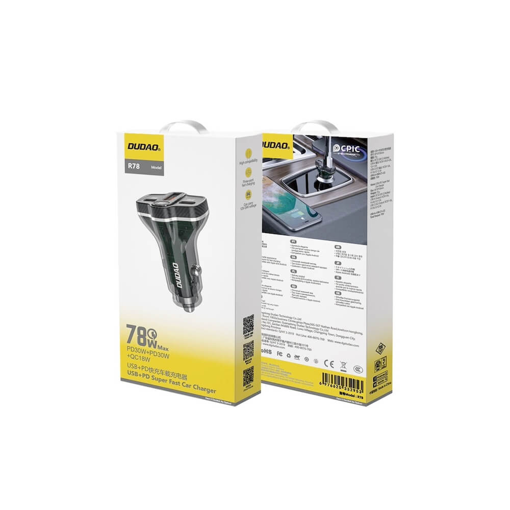 Dudao R78 Fast Car Charger PD 78W - зарядно за кола с 2xUSB-C и USB-A изходи с технология за бързо зареждане (черен)