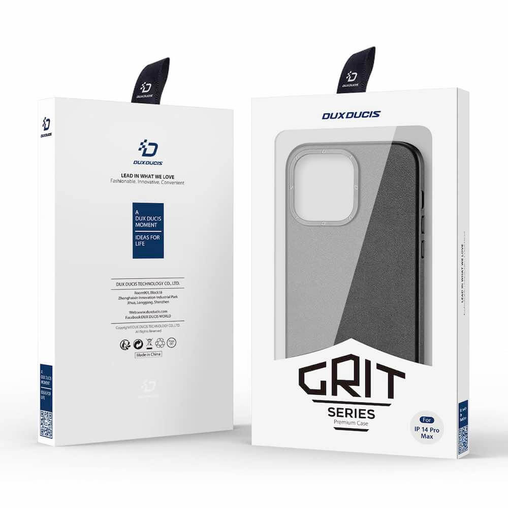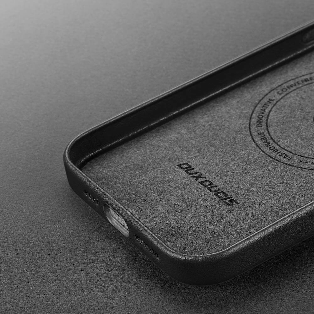 Dux Ducis Grit Faux Leather MagSafe Case - дизайнерски кожен кейс с MagSafe за iPhone 14 Pro Max (черен)