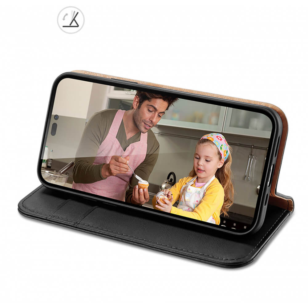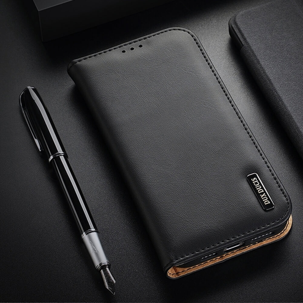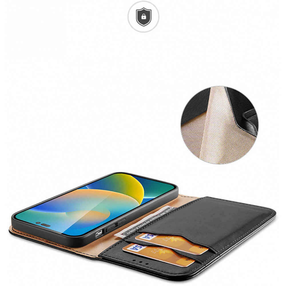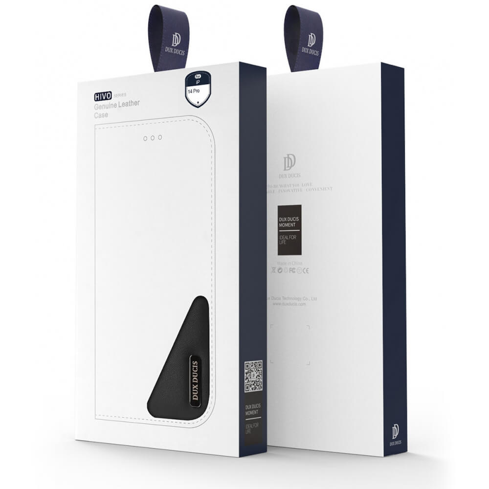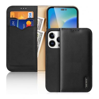 Dux Ducis Hivo Genuine Leather Flip Wallet Case - кожен калъф от естествена кожа с поставка и отделение за кр. карти за iPhone 14 Pro (черен)