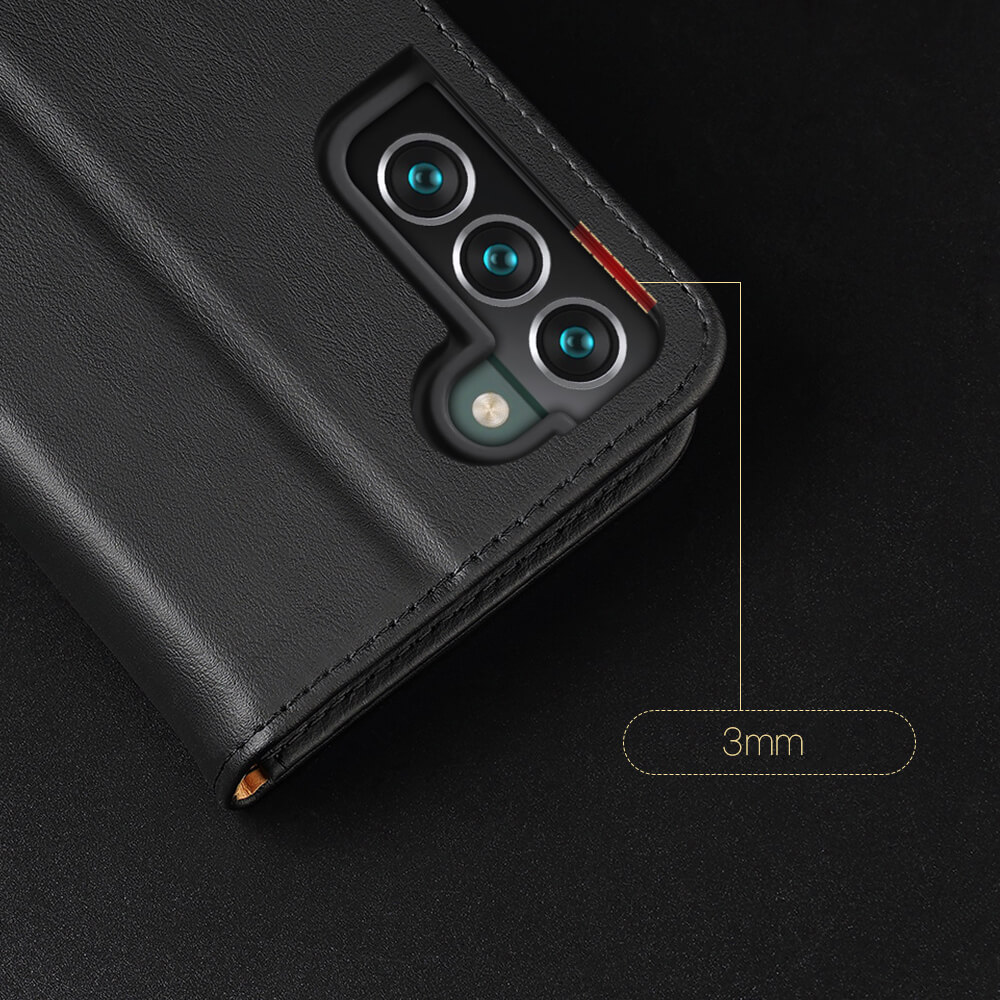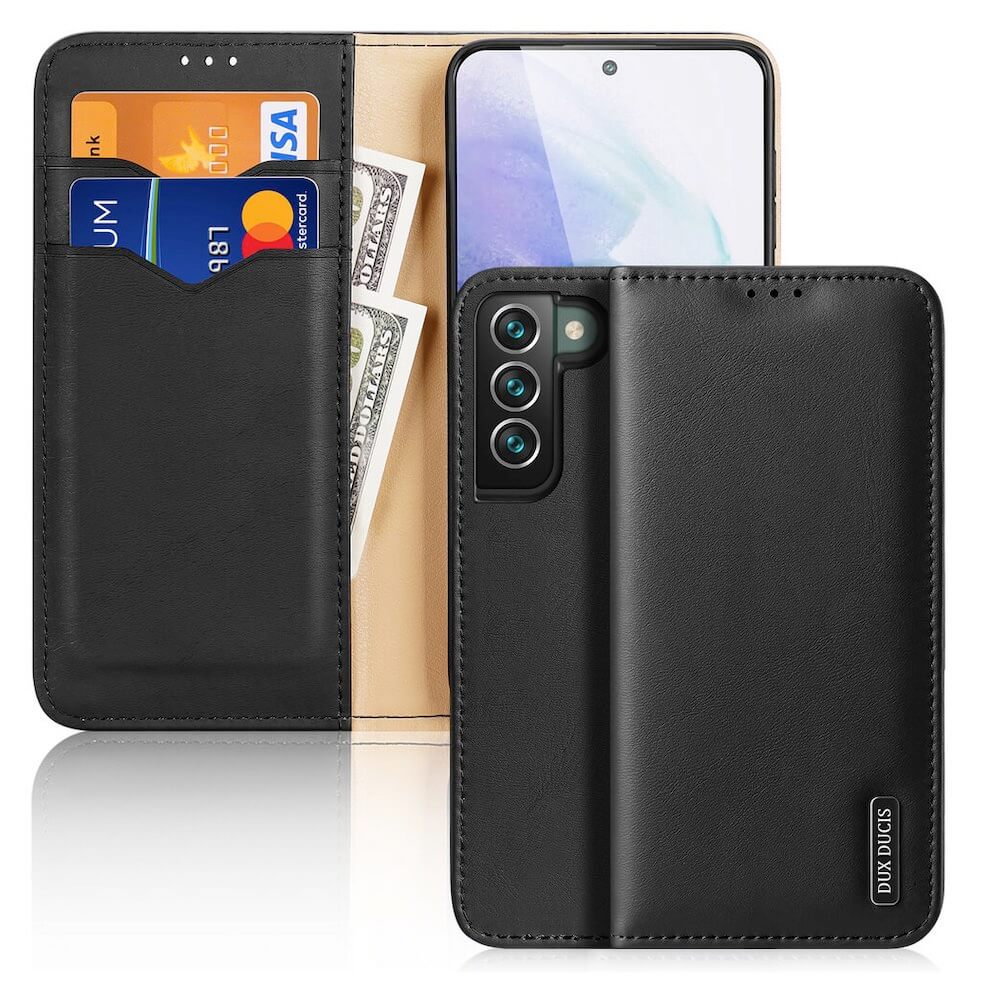 Dux Ducis Hivo Genuine Leather Flip Wallet Case - кожен калъф от естествена кожа с поставка и отделение за кр. карти за Samsung Galaxy S22 Plus (черен)