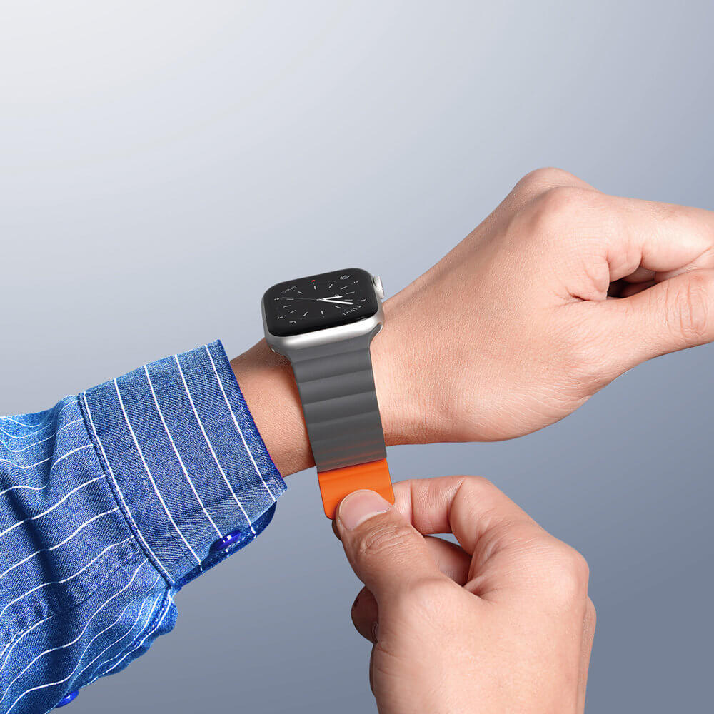 Dux Ducis Silicone Magnetic Strap (Chain Version) - магнитна силиконова каишка за Apple Watch 38мм, 40мм, 41мм (сив-оранжев)