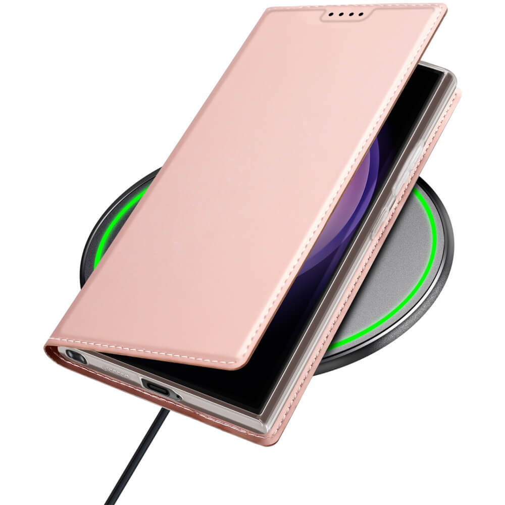 Dux Ducis Skin Pro Case - кожен калъф с поставка и отделение за кр. карти за Samsung Galaxy S24 Ultra (розов)