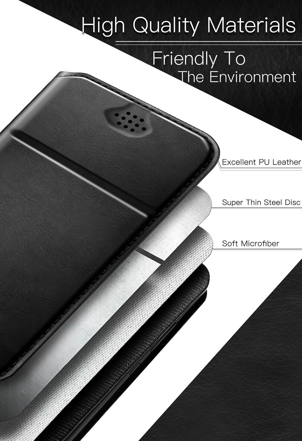 - Универсален кожен калъф за смартфони с размери на дисплея от 5.5 до 6.0 инча