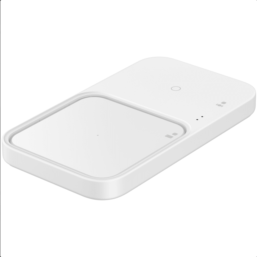 Двойна поставка (пад) с бързо безжично зареждане за Samsung смартфони и Qi съвместими устройства - Samsung Super Fast Wireless Charger Duo EP-P5400BBEGEU (бял)