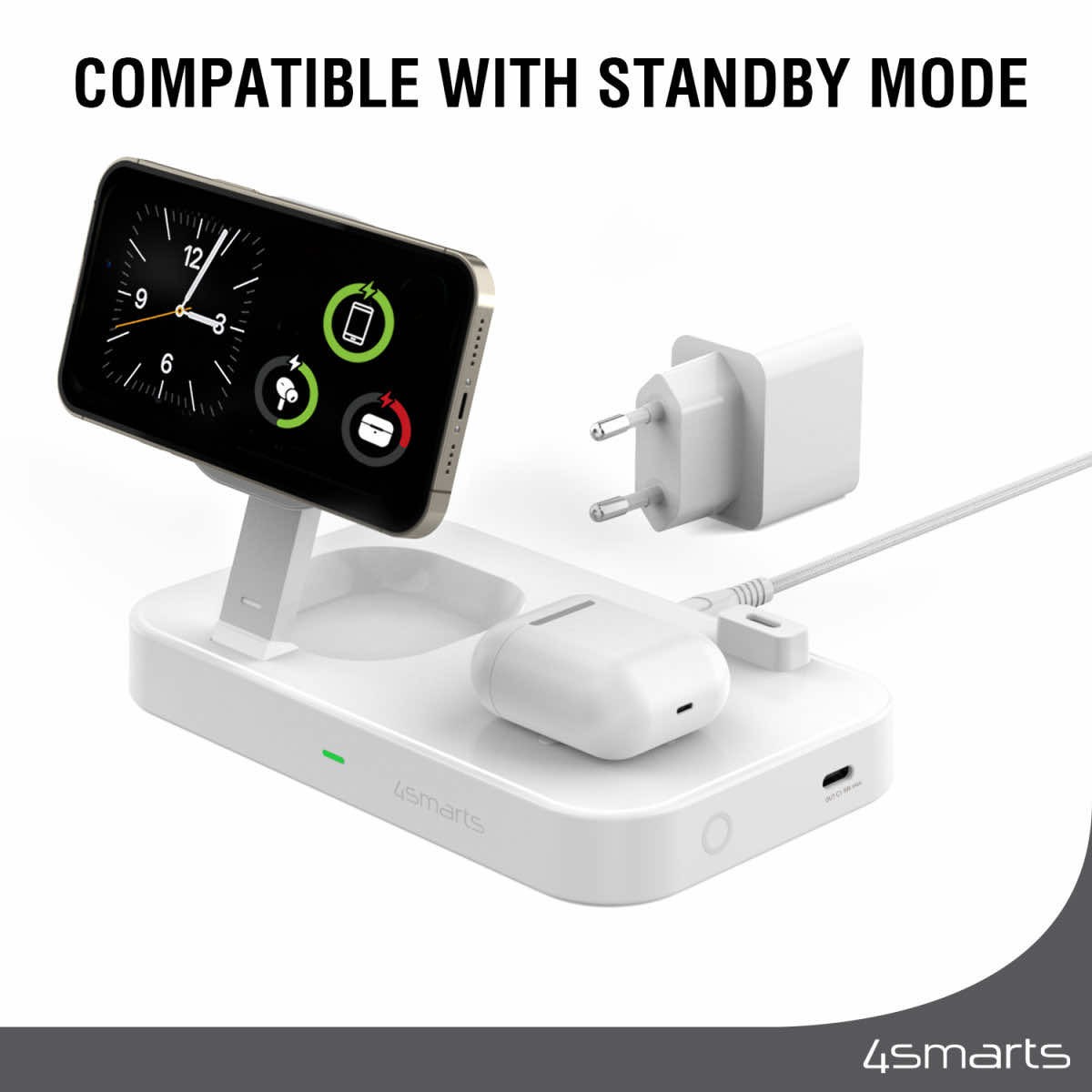 Представяме ви 4smarts Qi2 Charging Station Trident – иновативно решение за безжично зареждане, което комбинира стил и функционалност. С мощност до 15W, това зарядно устройство е идеално за вашия смартфон и слушалки.