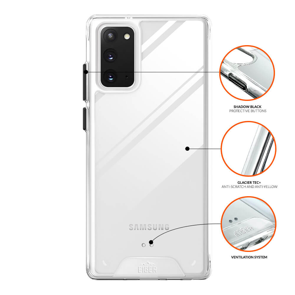 Eiger Glacier Case - удароустойчив хибриден кейс за Samsung Galaxy Note 20 (прозрачен)