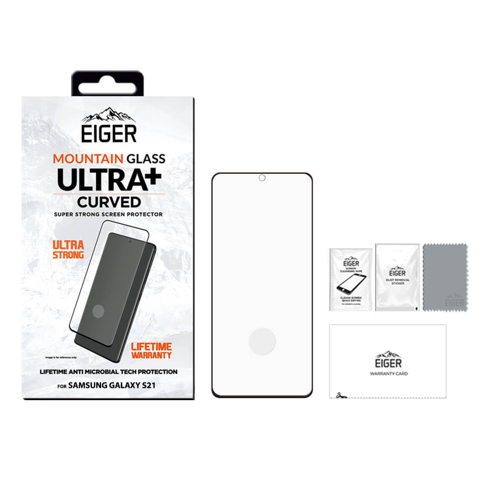 Eiger Mountain Glass Ultra Plus Tempered Glass - калено стъклено защитно покритие с извити ръбове за дисплея на Samsung Galaxy S21 (прозрачен)