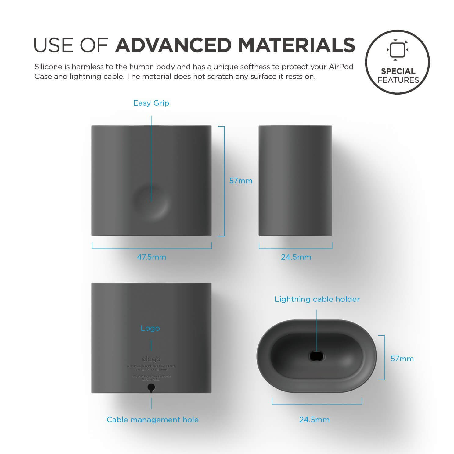 Elago Airpods Charging Station - док станция за зареждане на Apple Airpods (тъмносива)