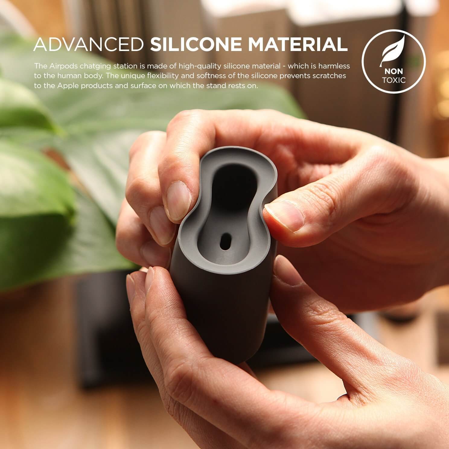- Силиконова док станция, в която можете да поставите Lightning кабел за зареждане на вашите Apple Airpods