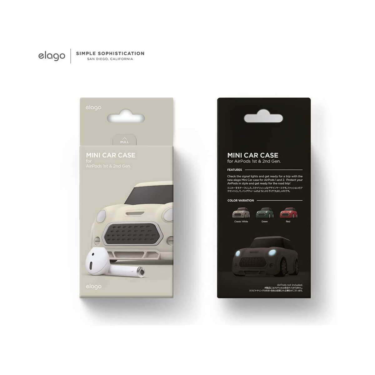 Elago Airpods Mini Car Design Silicone Case - силиконов калъф с карабинер за Apple Airpods и Apple Airpods 2 (бял)