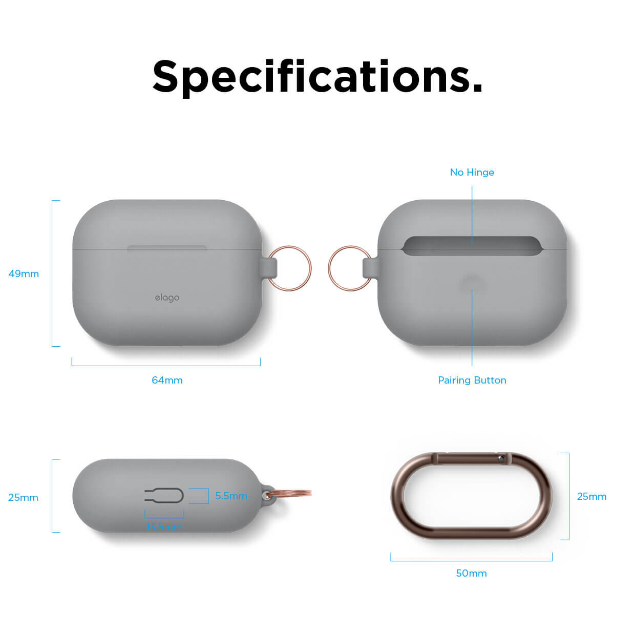 Elago Airpods Original Hang Silicone Case - силиконов калъф с карабинер за Apple Airpods Pro (светлосив)
