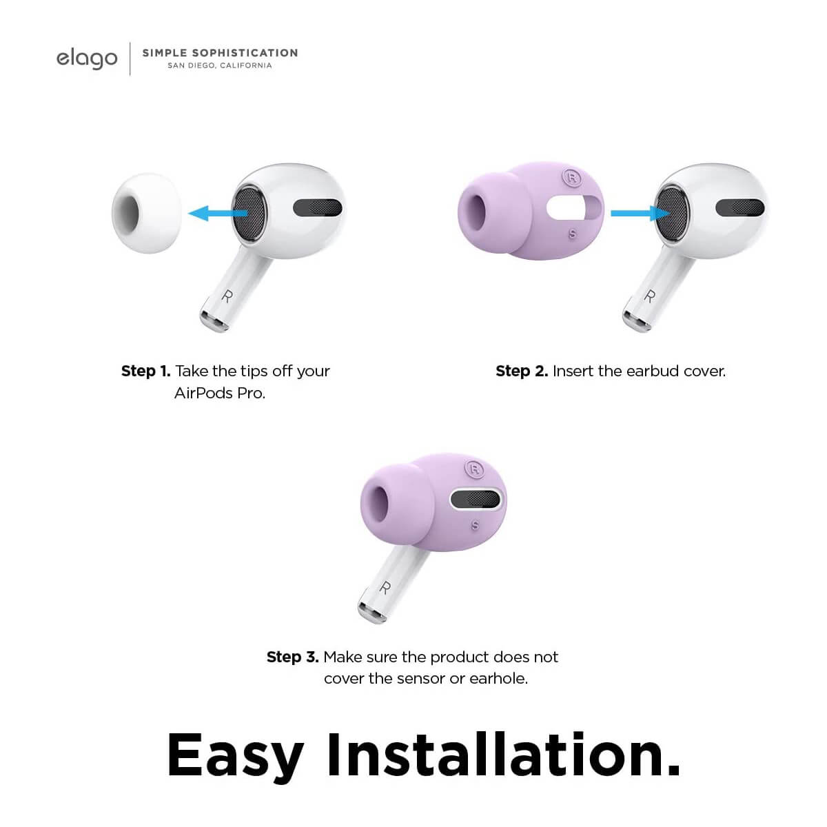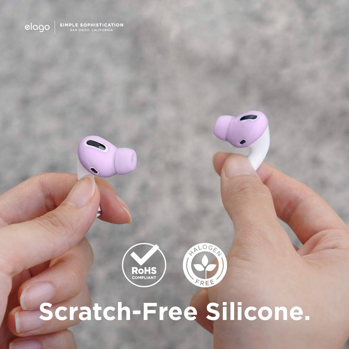 Elago Airpods Pro Earbuds Cover Plus Tips - антибактериални силиконови калъфчета с вградени тапички за Apple Airpods Pro (6 чифта) (лилав)