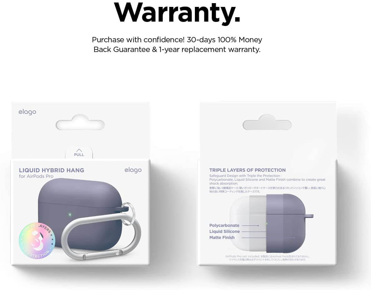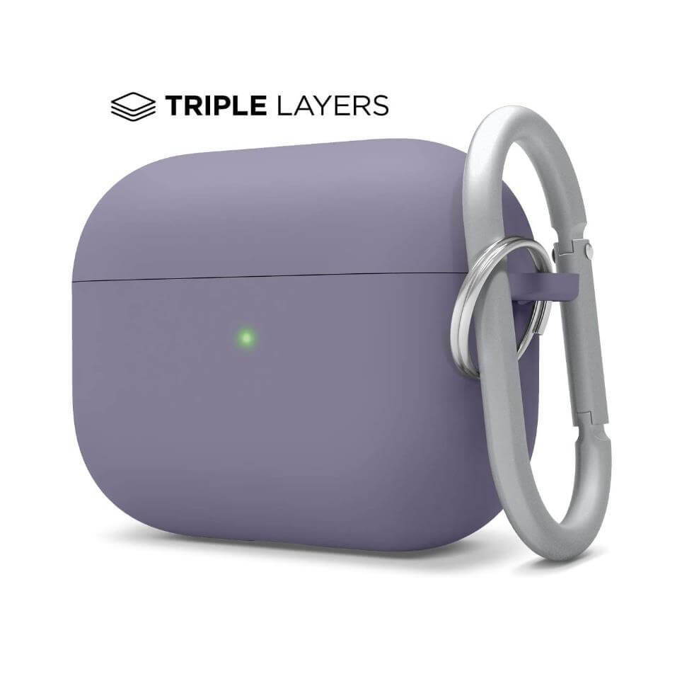 Elago Airpods Pro Liquid Hybrid Hang Case - твърд силиконов кейс с карабинер за Apple Airpods Pro (тъмнолилав)
