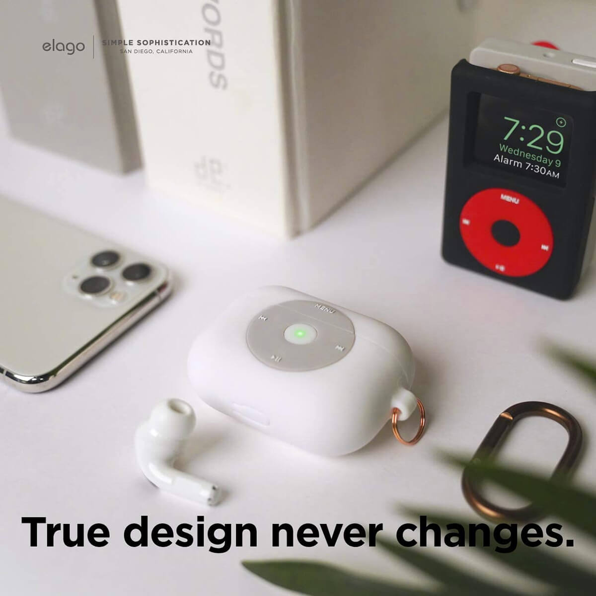 Elago Airpods Pro Retro AW6 Silicone Hang Case - силиконов калъф с карабинер за Apple Airpods Pro (бял)