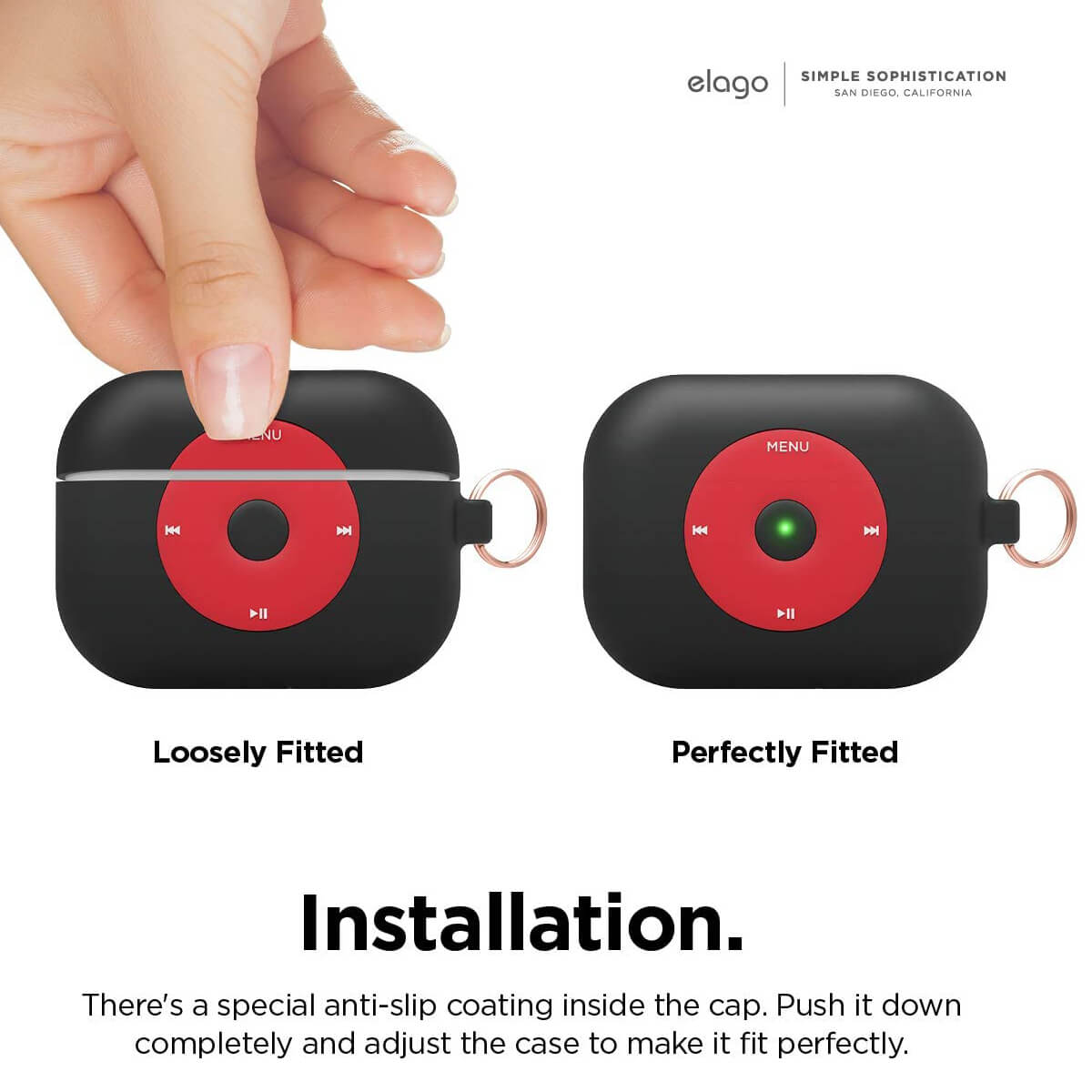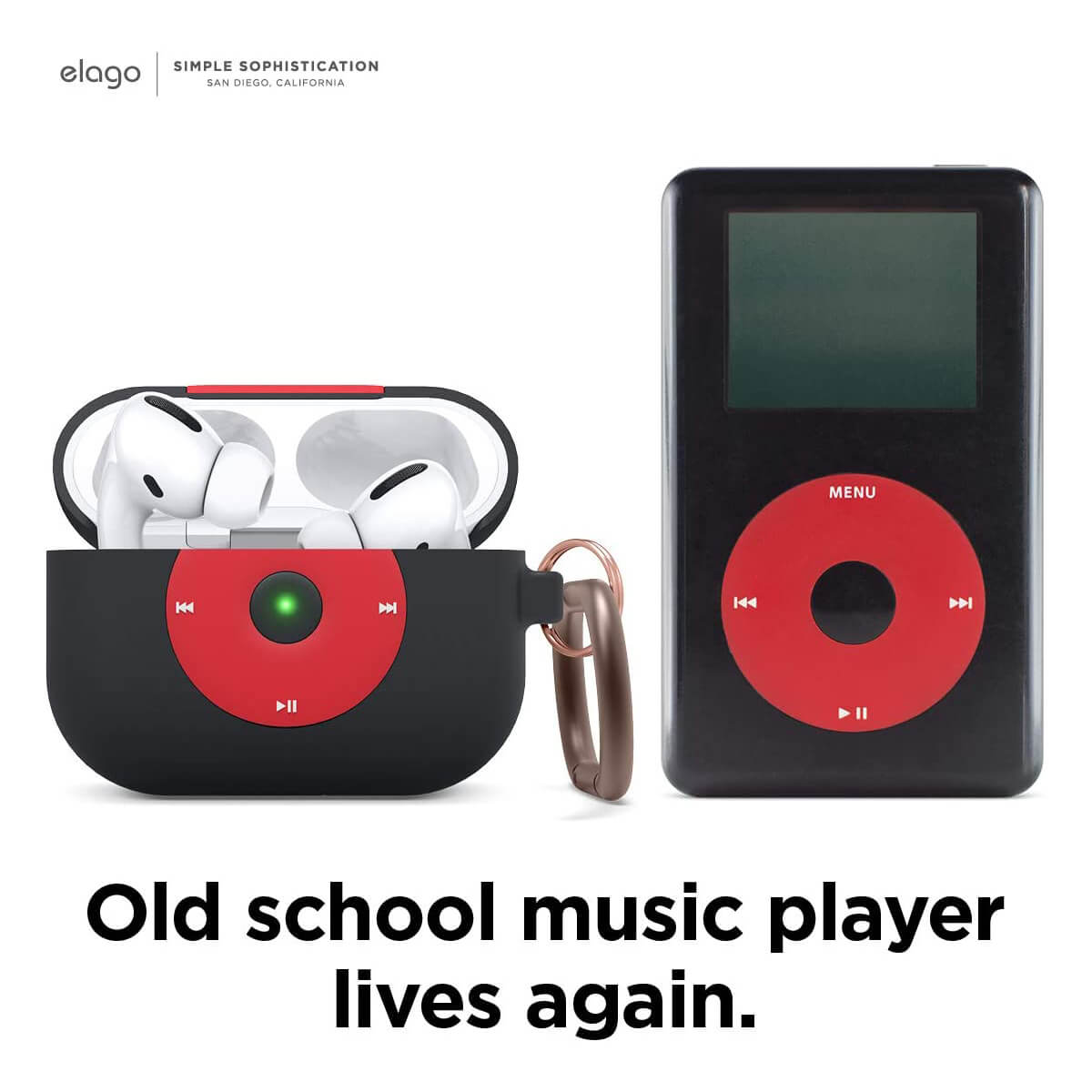 Elago Airpods Pro Retro AW6 Silicone Hang Case - силиконов калъф с карабинер за Apple Airpods Pro (черен)