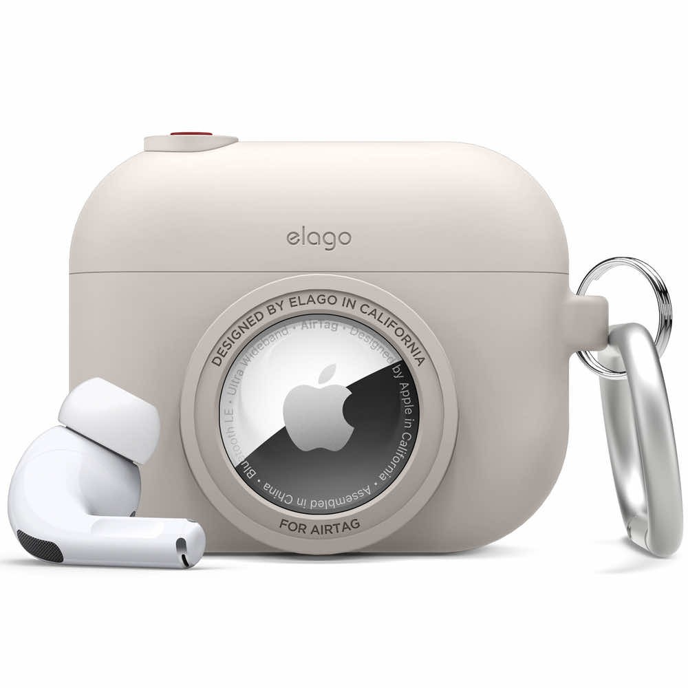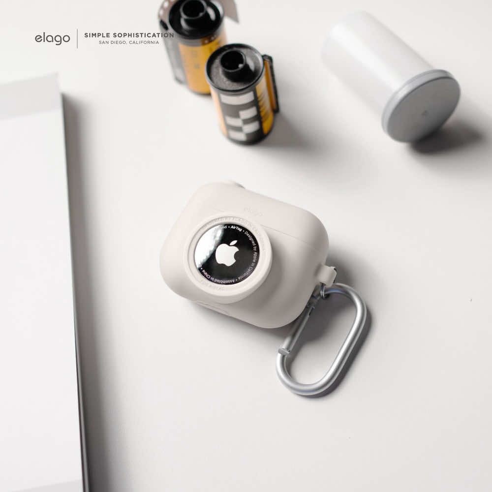 Elago AirPods Pro Snapshot Silicone Case - силиконов калъф (с място за AirTag) с карабинер за Apple AirPods Pro (бежов)