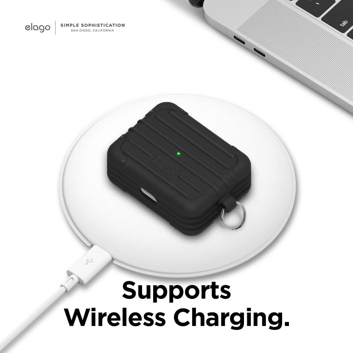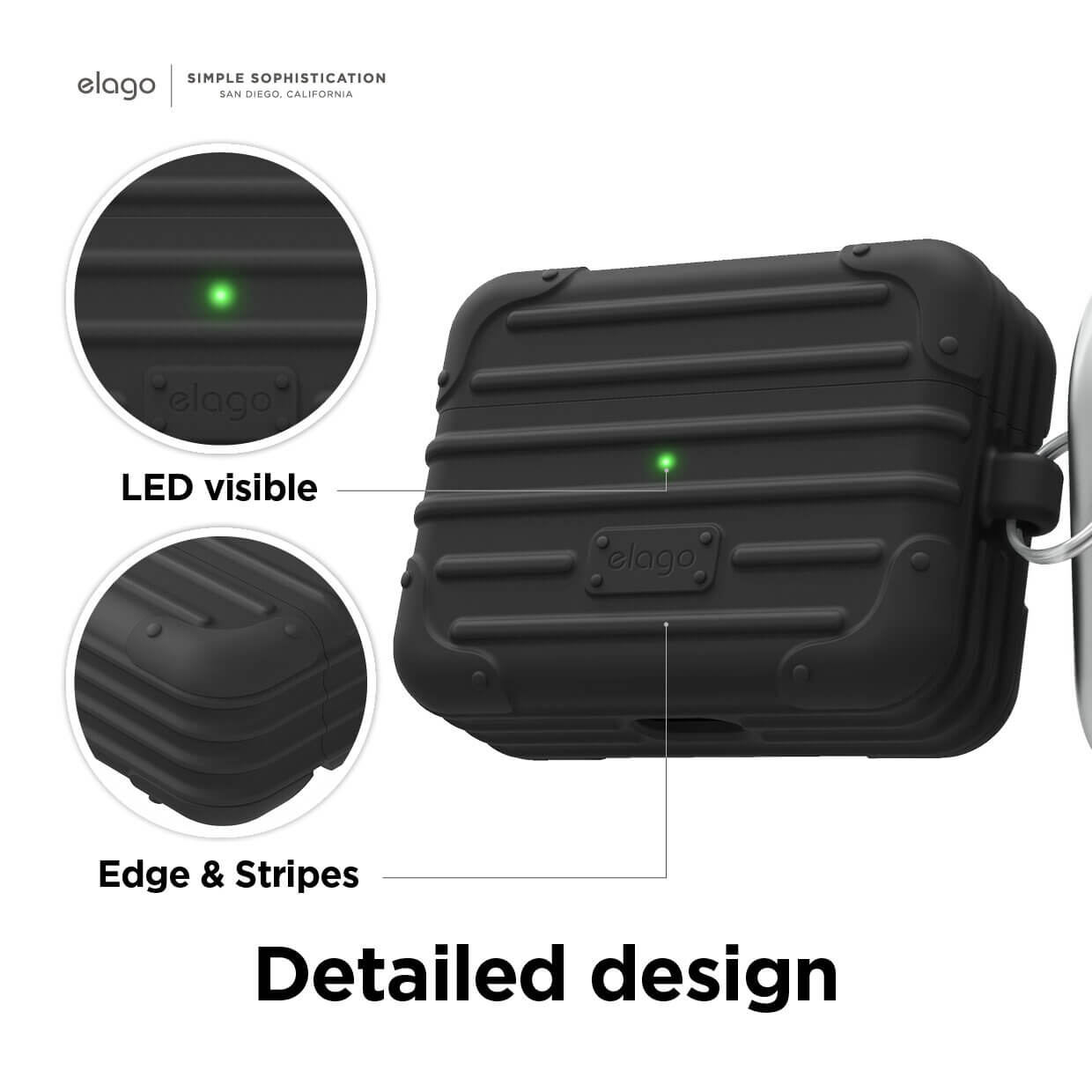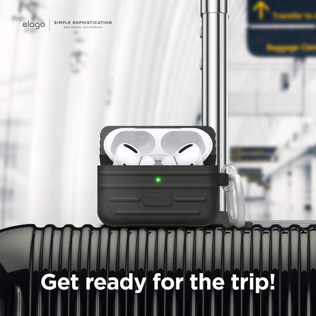 Elago AirPods Pro Suitcase - удароустойчив силиконов калъф с карабинер за Apple Airpods Pro (черен)