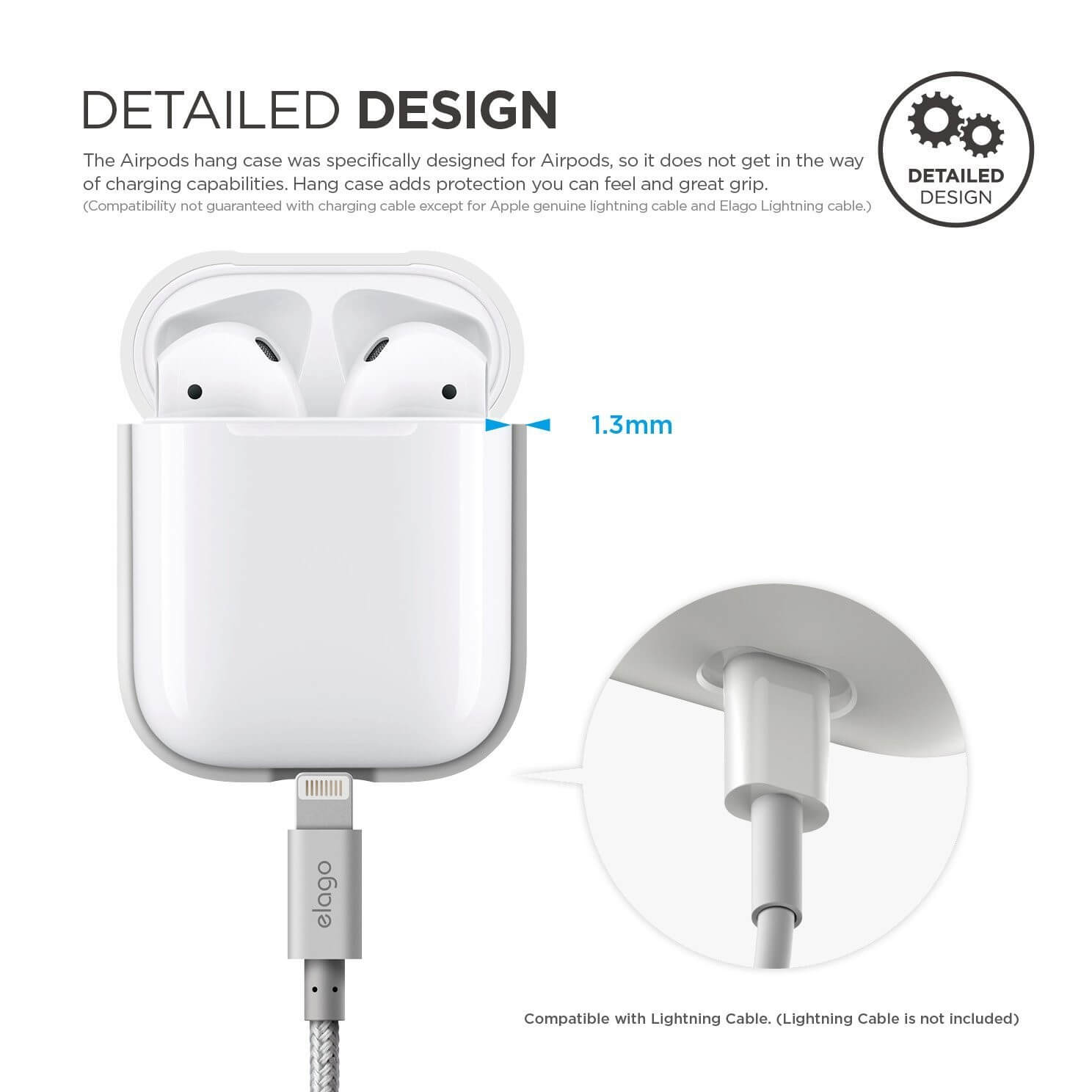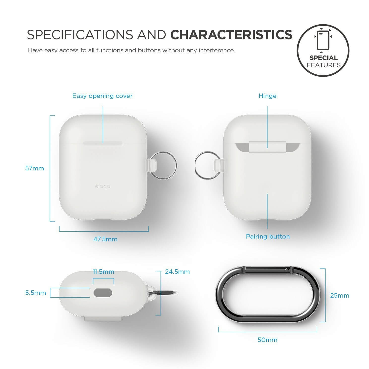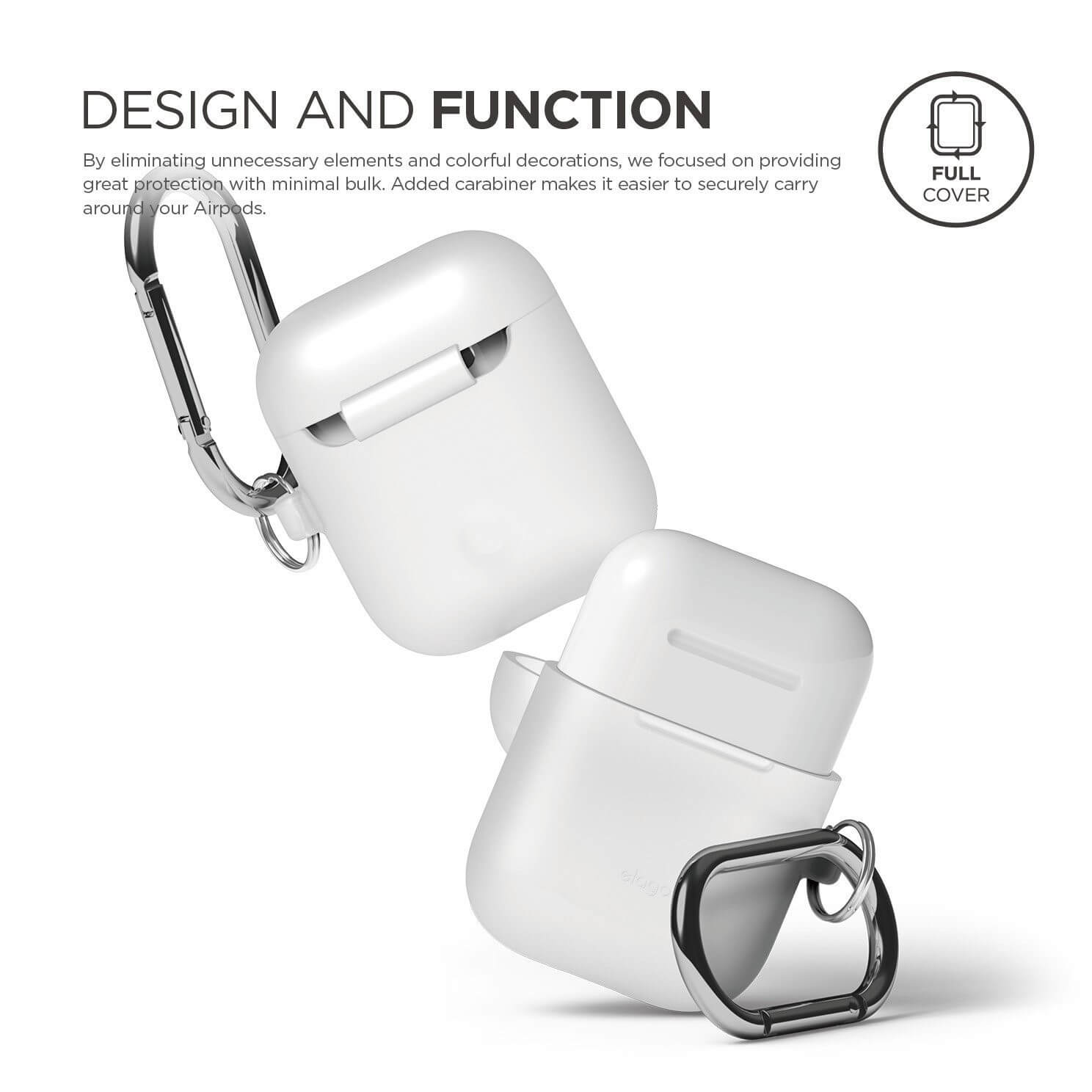 Elago Airpods Silcone Hang Case - силиконов калъф с карабинер за Apple Airpods (бял - фосфоресцираш)