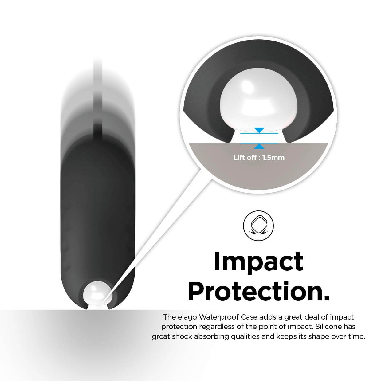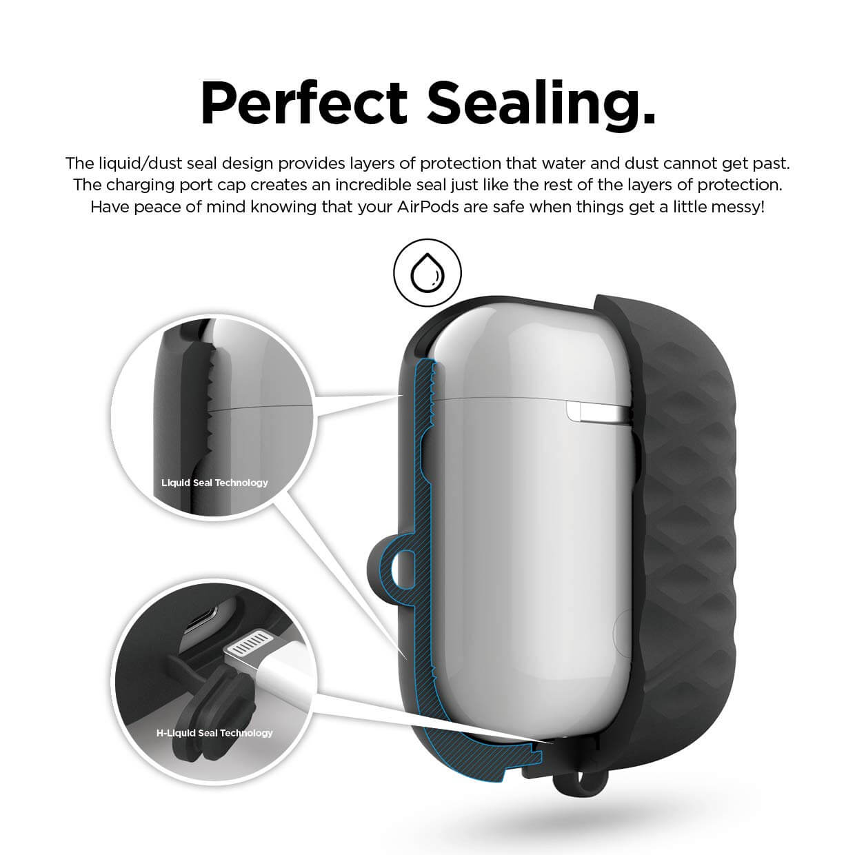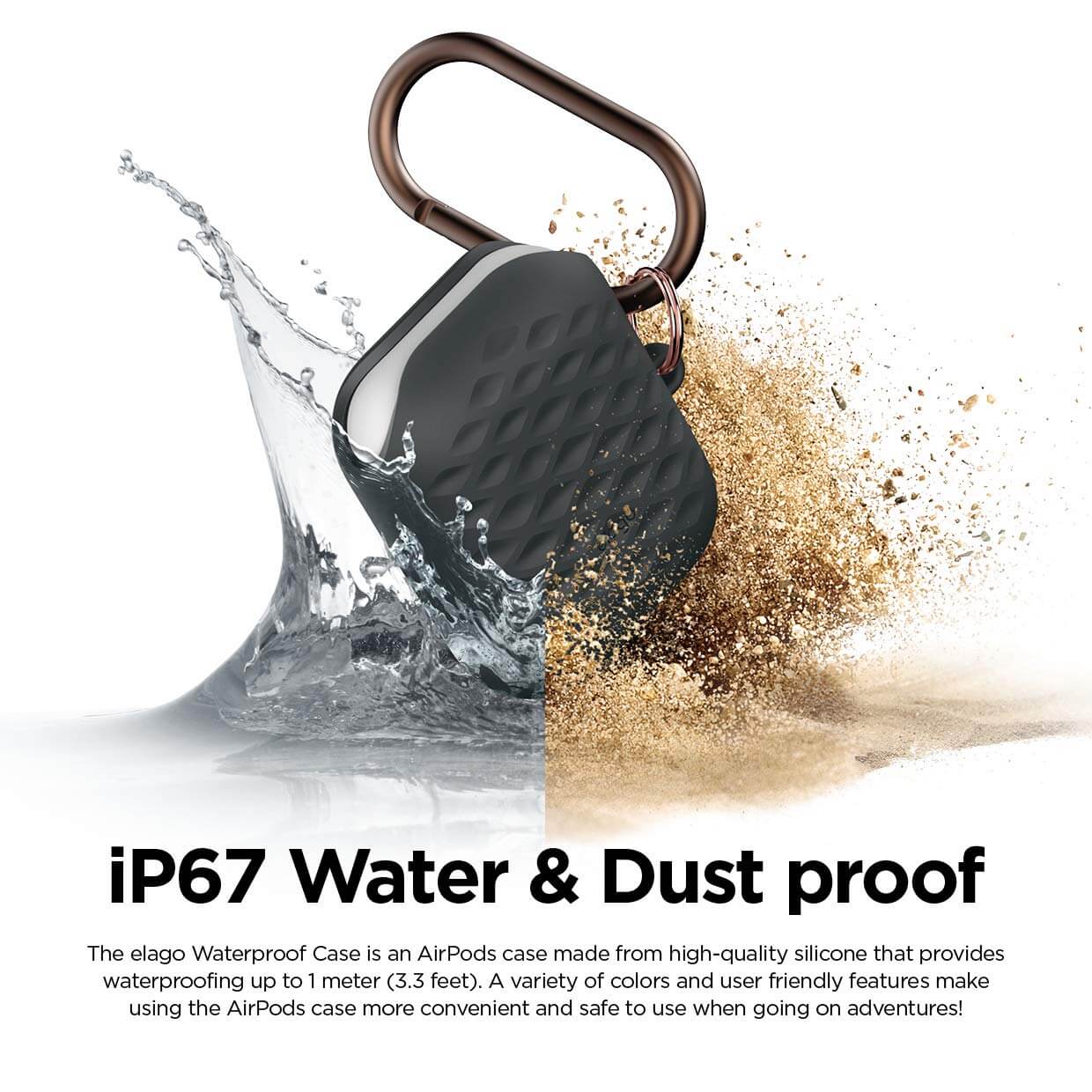- Водоустойчив силиконов калъф за Apple Airpods, снабден със сертификат IP67 и устойчив на потапяне до 1 метър дълбочина във вода
