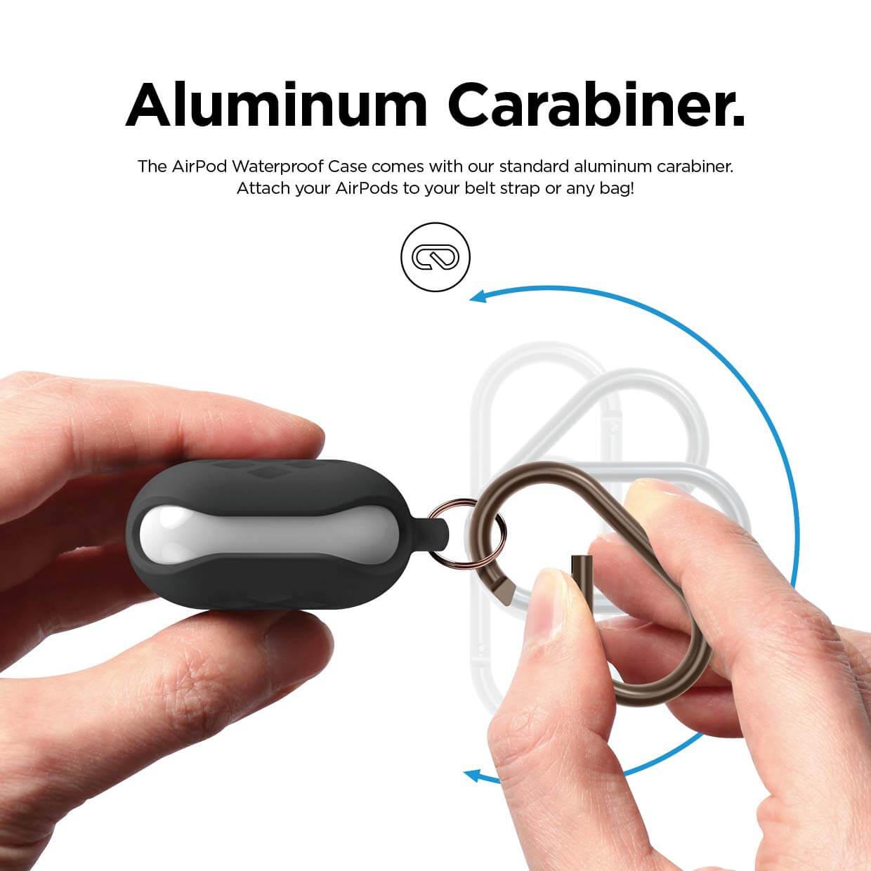 Elago Airpods Waterproof Active Hang Case - водоустойчив силиконов калъф с карабинер за Apple Airpods (черен)