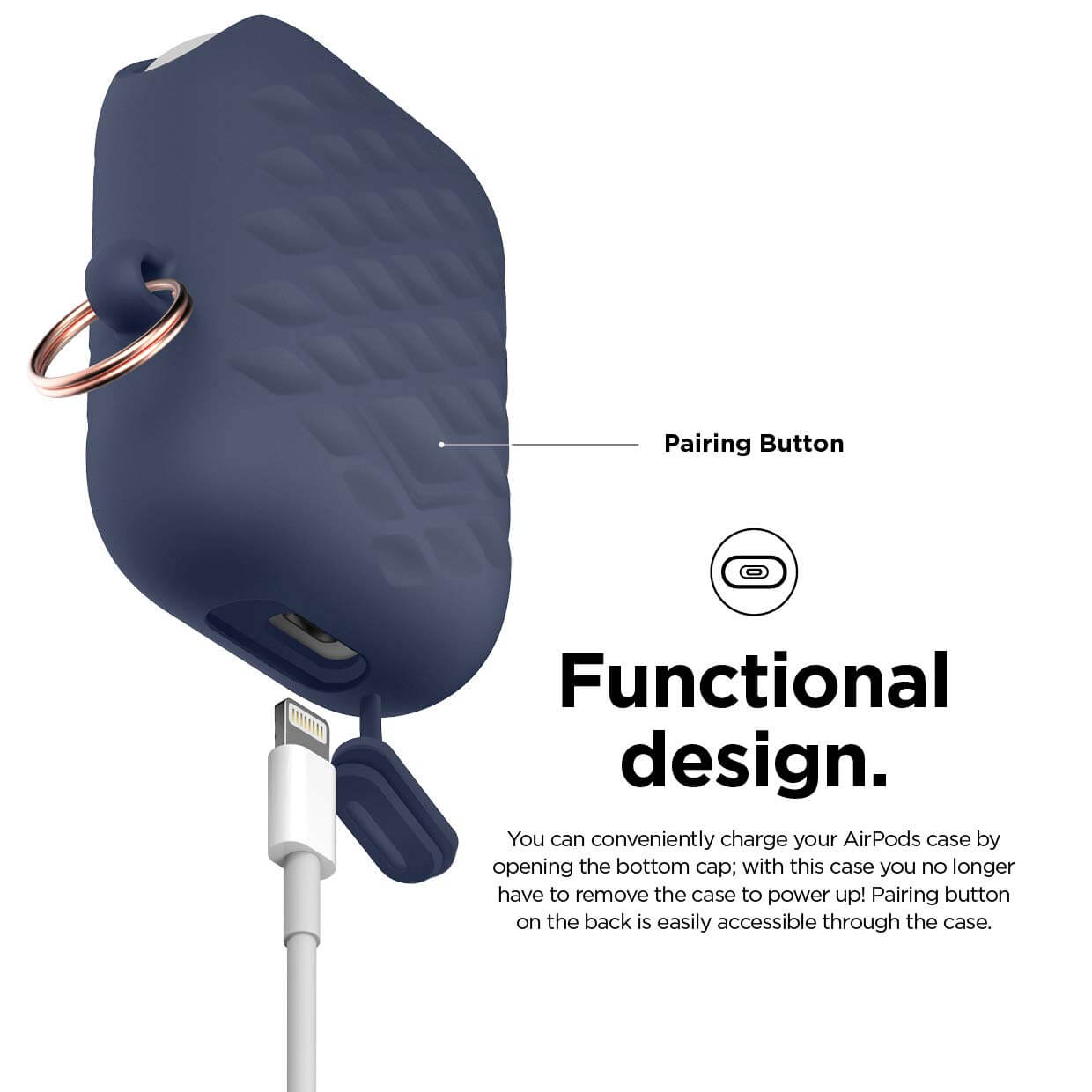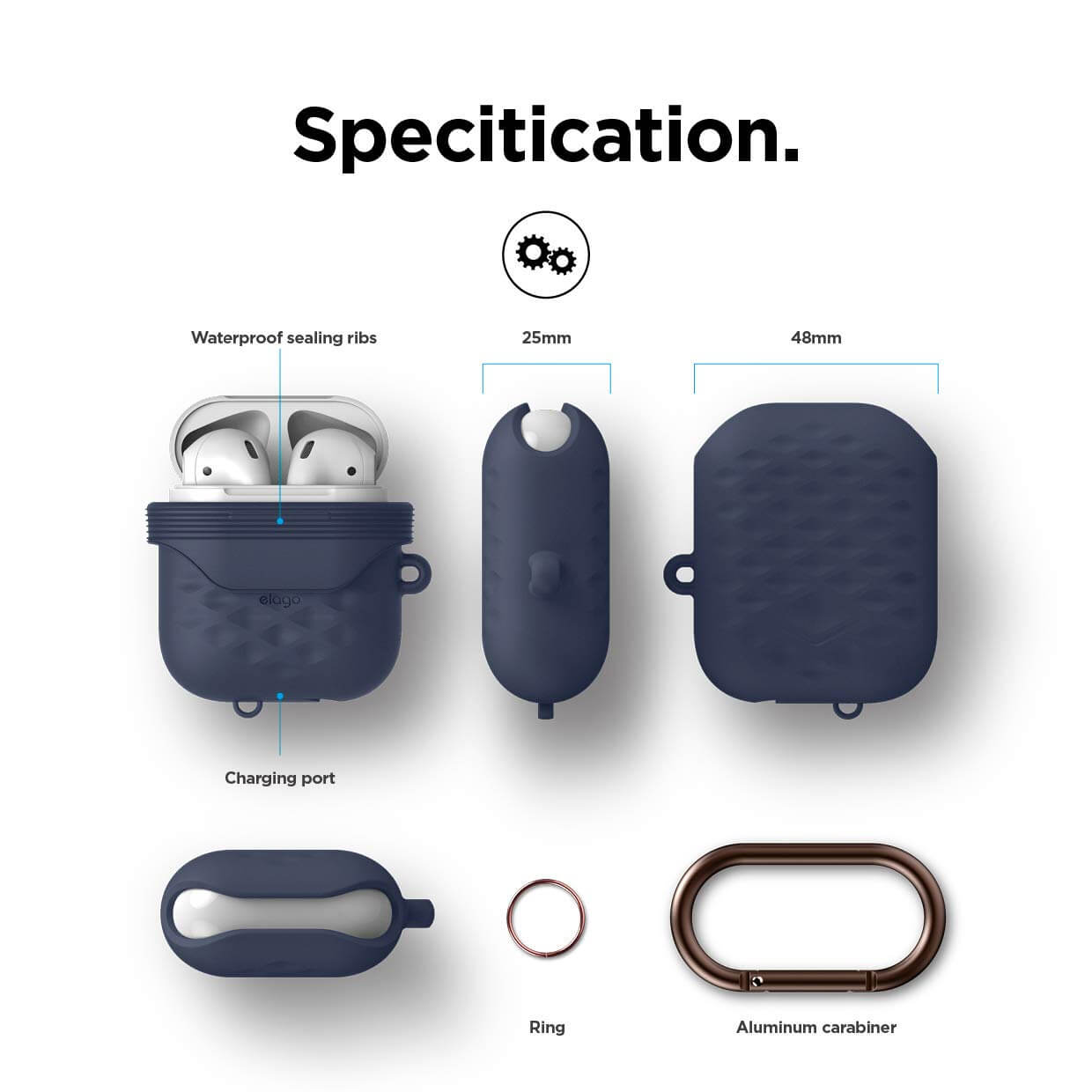 Elago Airpods Waterproof Active Hang Case - водоустойчив силиконов калъф с карабинер за Apple Airpods (тъмносин)