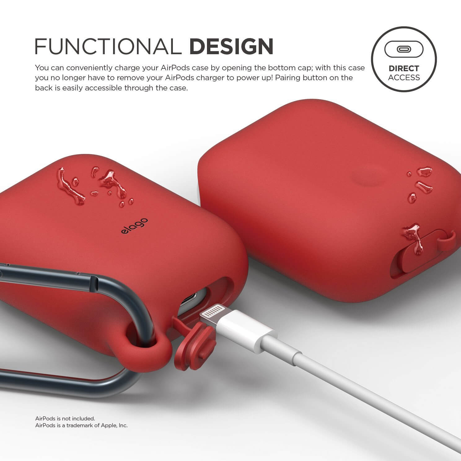Elago Airpods Waterproof Hang Case - водоустойчив силиконов калъф с карабинер за Apple Airpods (червен)