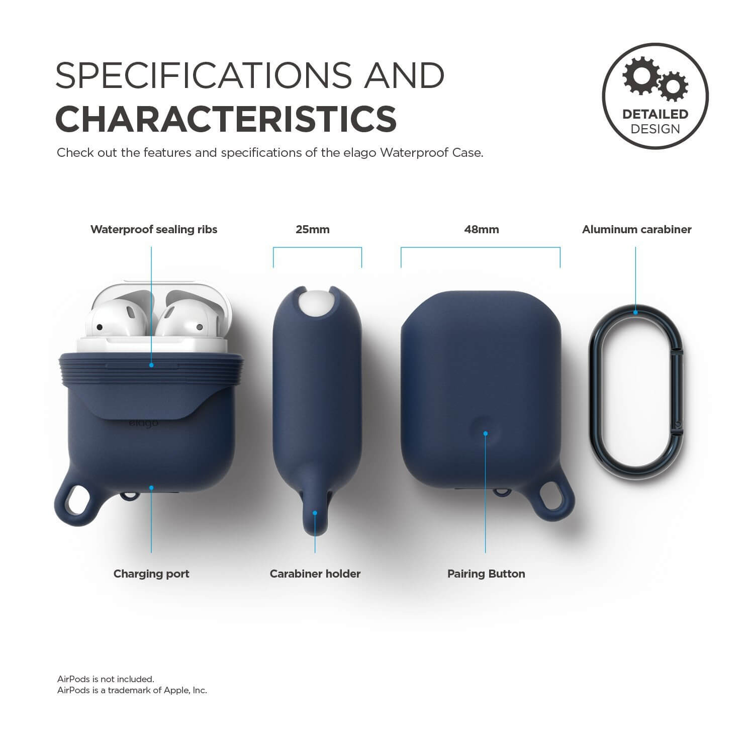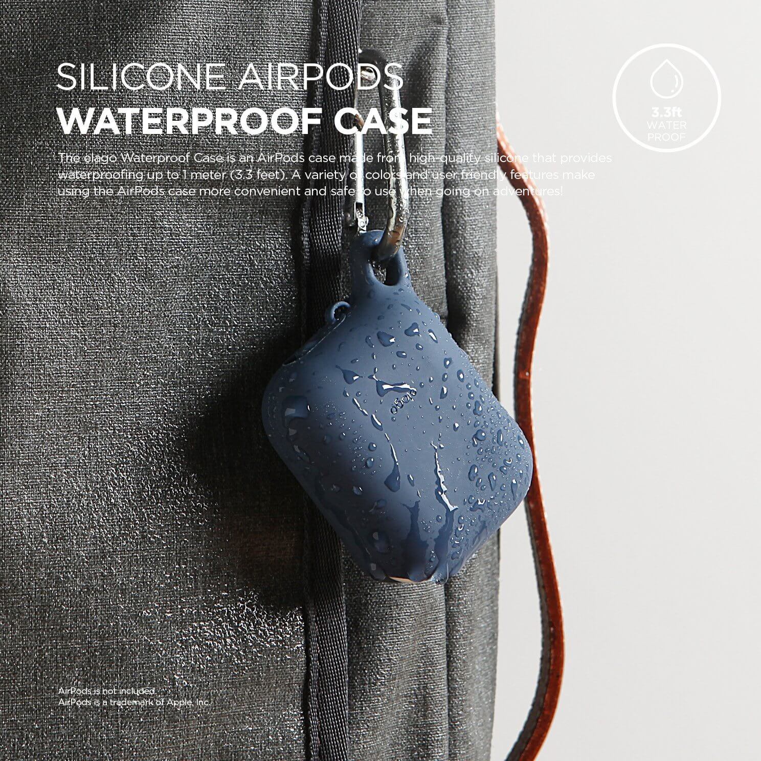 Elago Airpods Waterproof Hang Case - водоустойчив силиконов калъф с карабинер за Apple Airpods (тъмносин)