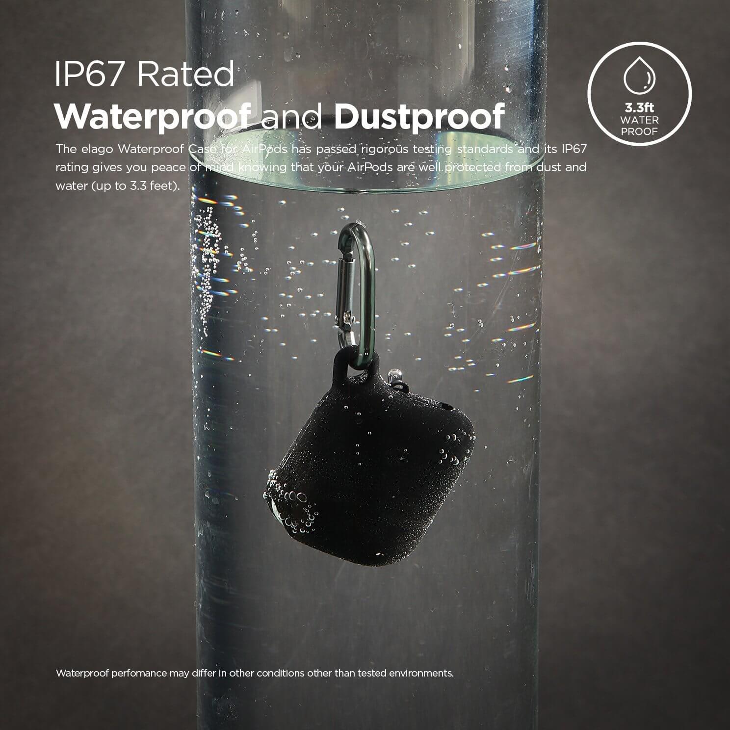 - Водоустойчив силиконов калъф за Apple Airpods, снабден със сертификат IP67 и устойчив на потапяне до 1 метър дълбочина във вода