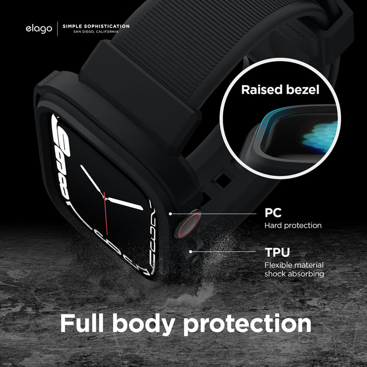 Elago Armor Case - удароустойчив TPU кейс с вградена каишка за Apple Watch 44мм, 45мм (черен)